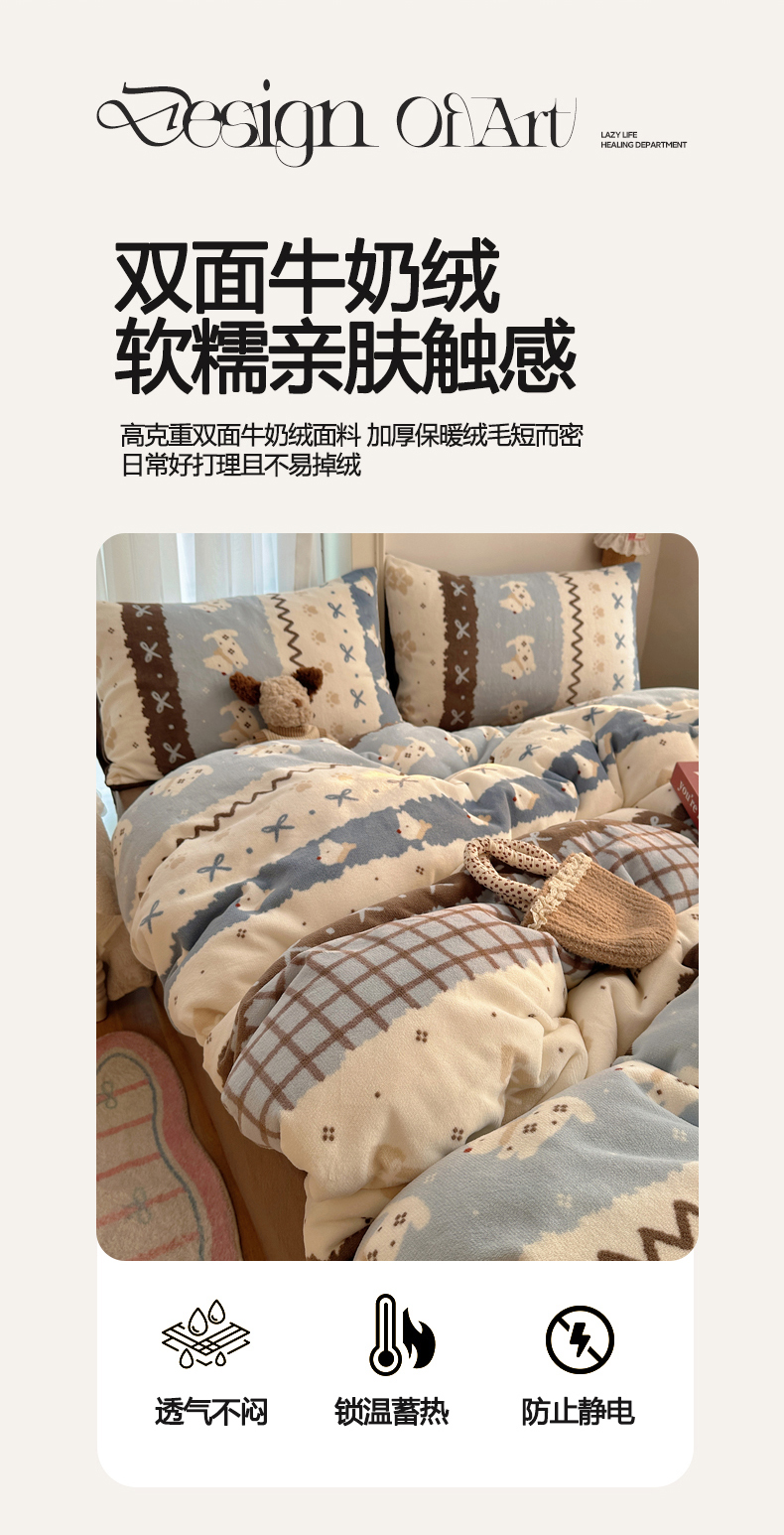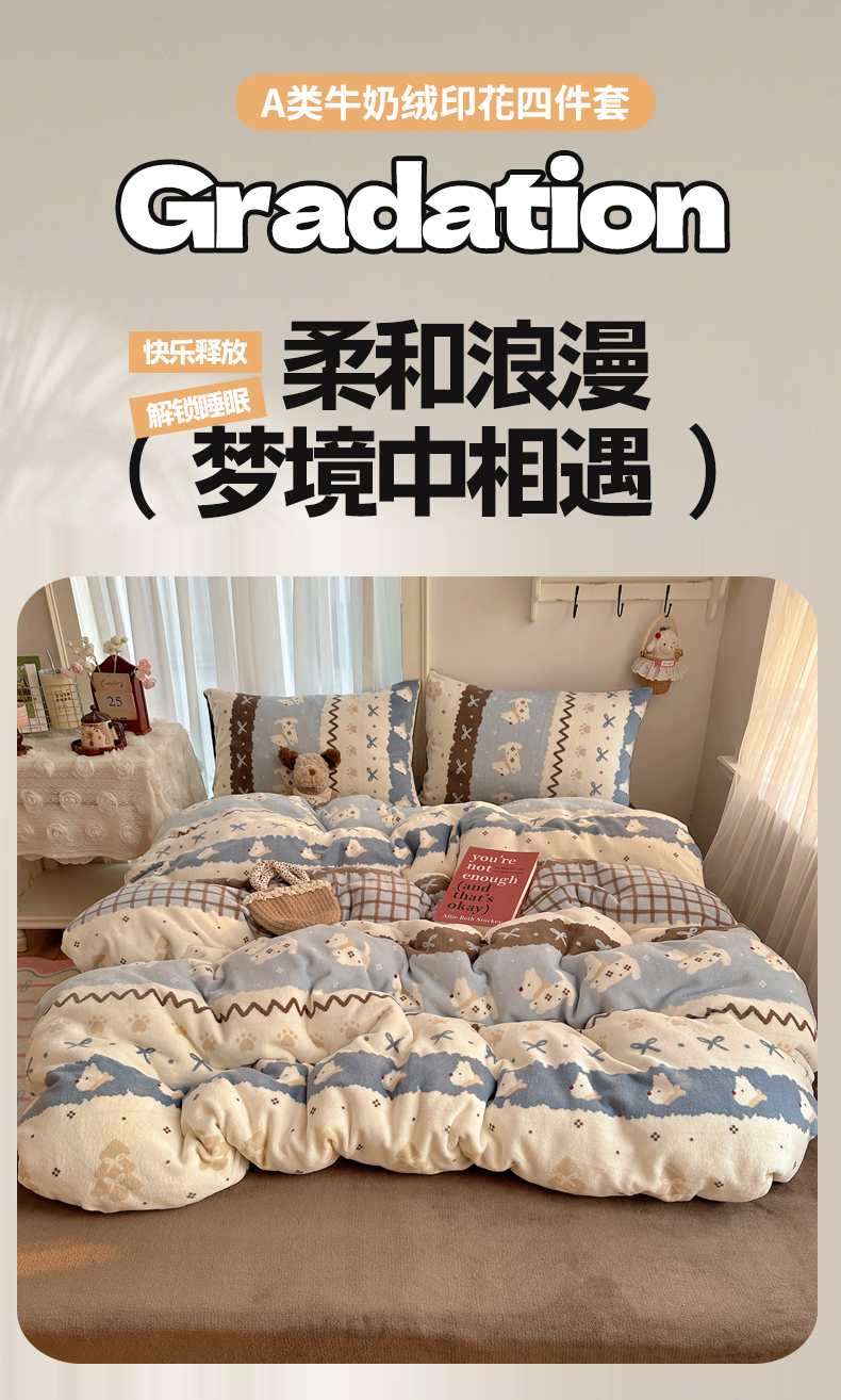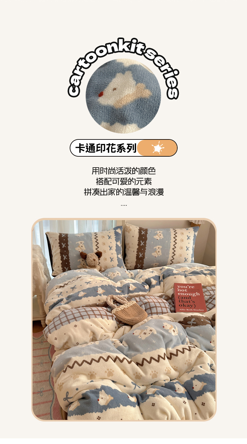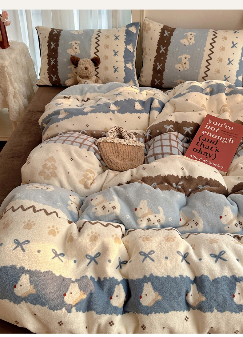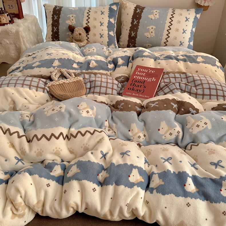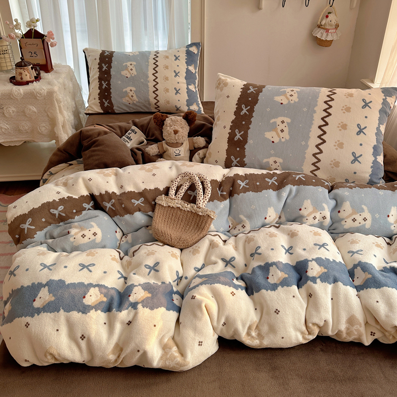 当前位置: 91家纺网 > 商品网购 > 床品套件 > 四件套 > 牛奶绒四件套 > 耀达家居 爆款2025新款ins小清新少女奶油卡通可爱加厚200克牛奶绒四件套 费尔岛小狗