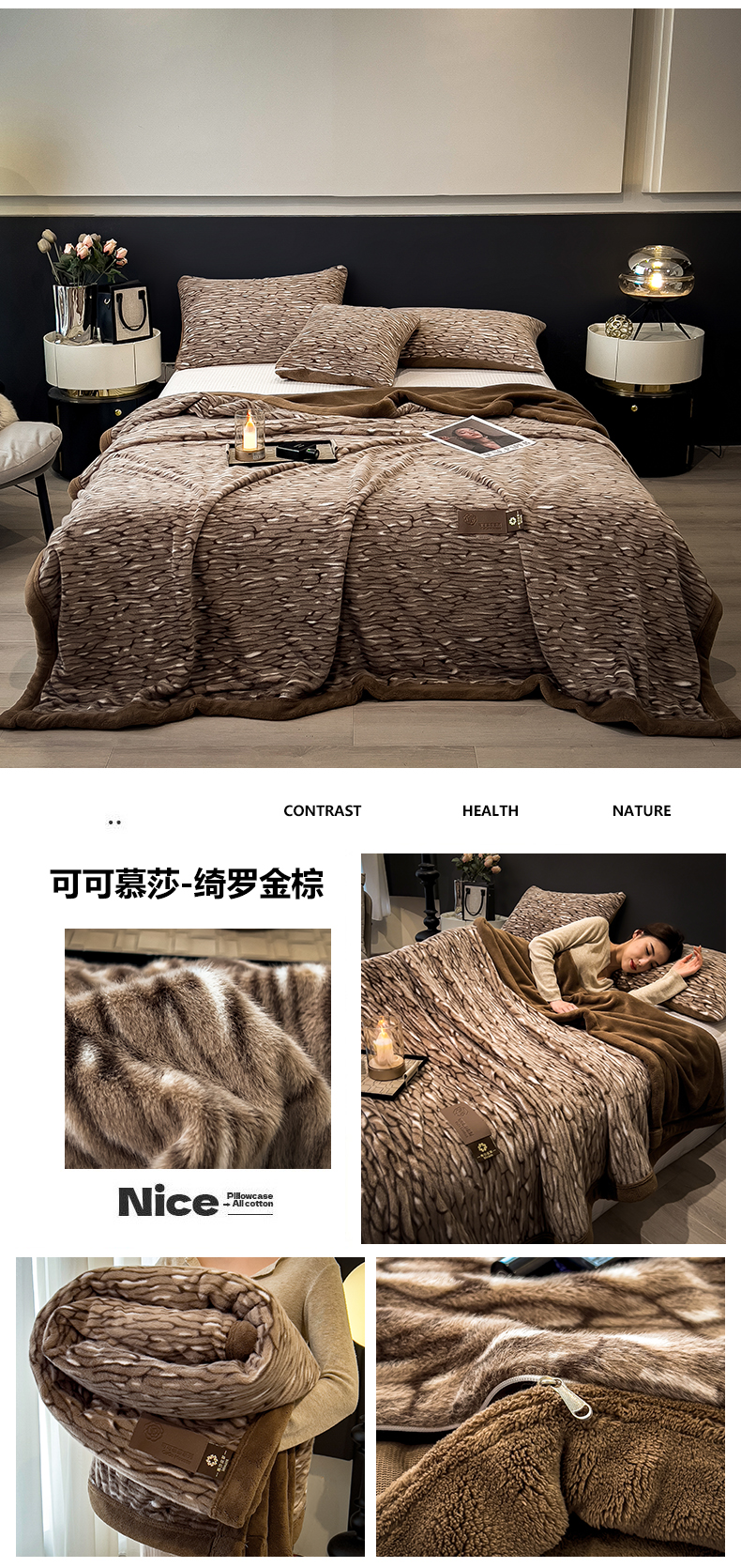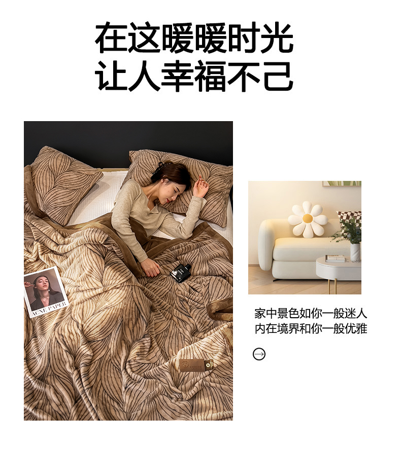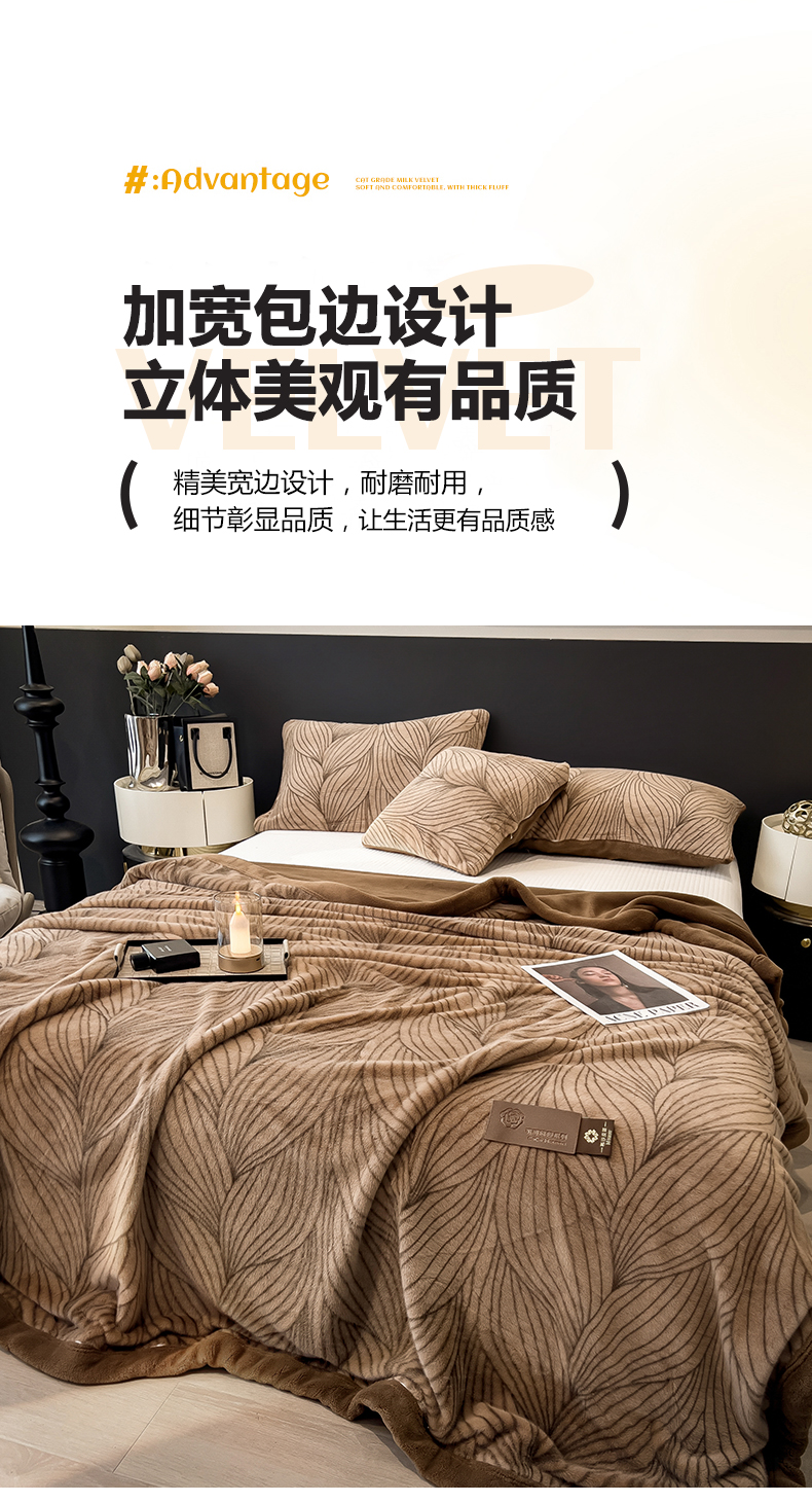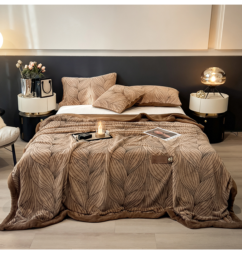 商品名称:慕木家纺 2025新款轻奢水貂拉链毛毯可可慕莎系列 可可慕莎-金棕叶
