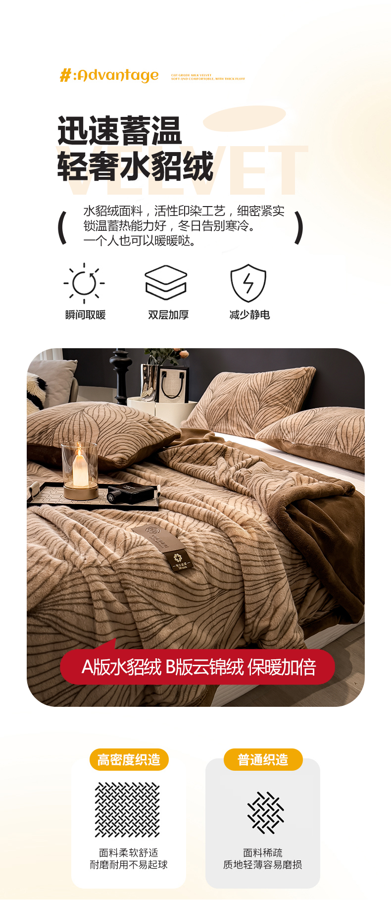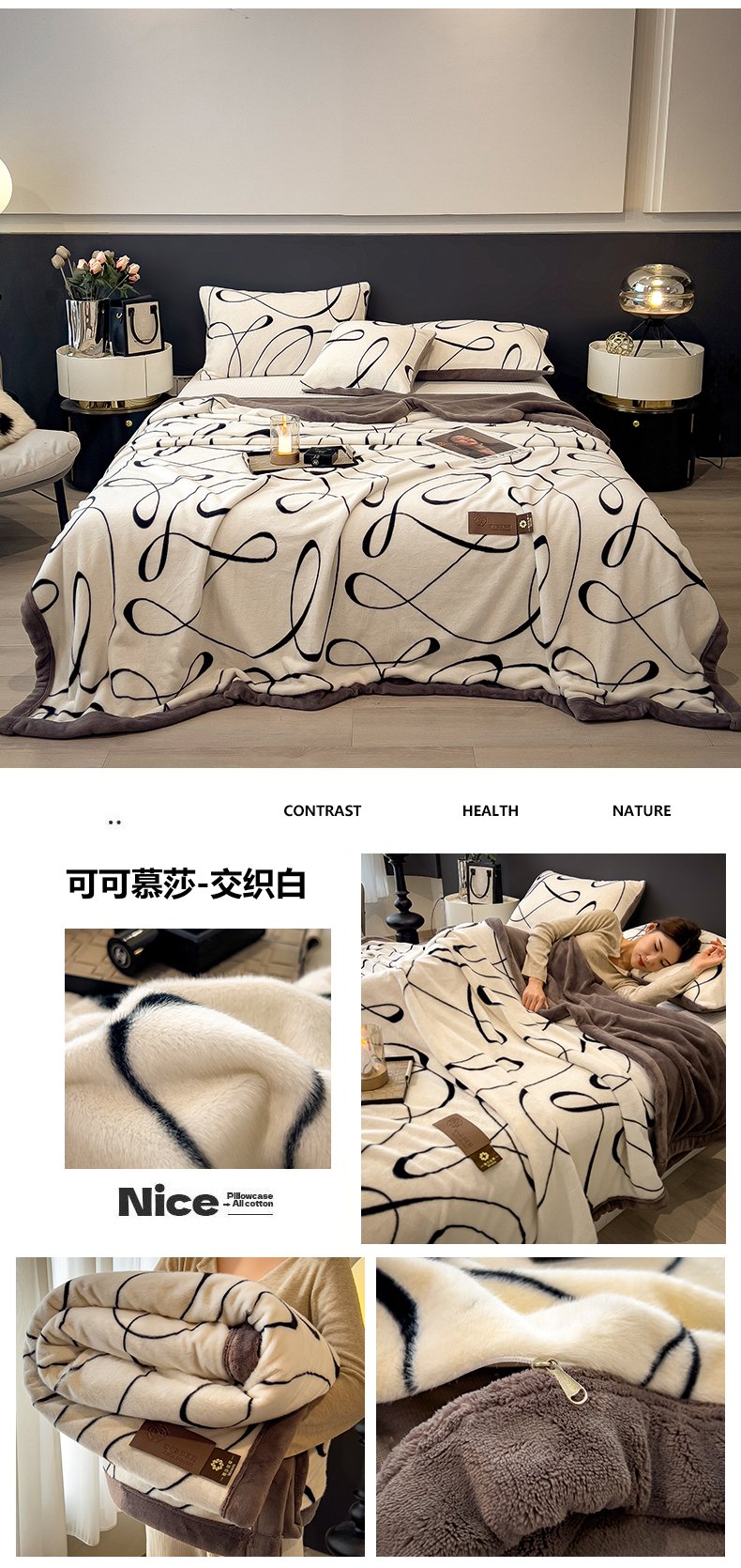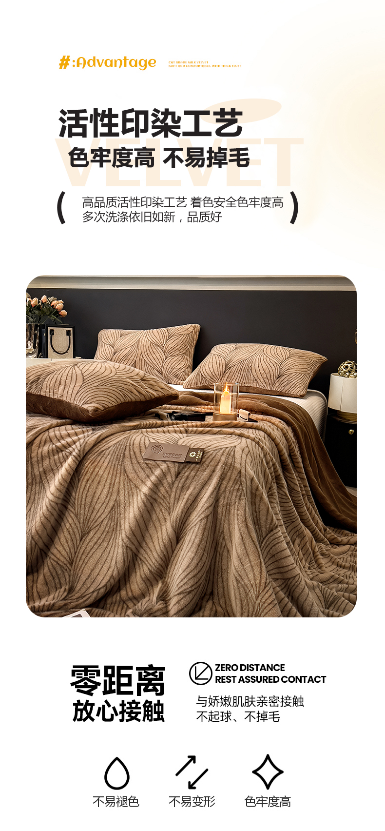 商品名称:慕木家纺 2025新款轻奢水貂拉链毛毯可可慕莎系列 可可慕莎-金棕叶
