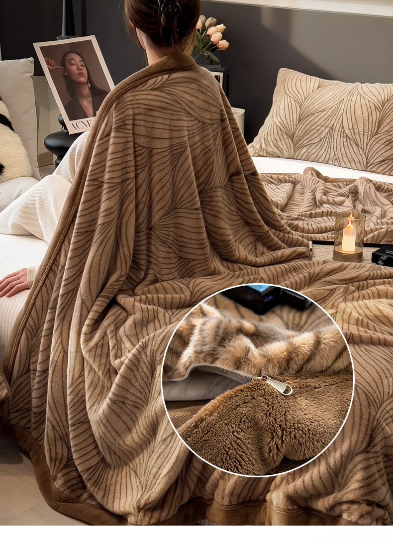 慕木家纺 2025新款轻奢水貂拉链毛毯可可慕莎系列 可可慕莎-金棕叶
