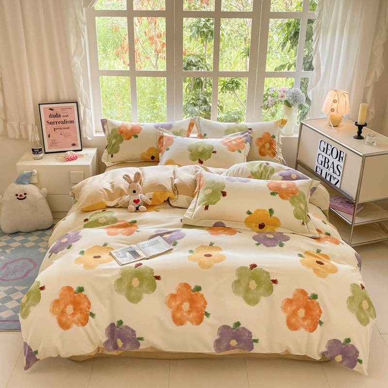 (总)仔仔熊 2025新款牛奶绒纯色双拼四件套,粉色+灰色,黄色+粉色,黄色+蓝色,黄色+绿色,灰色+橙色,卡其+咖色