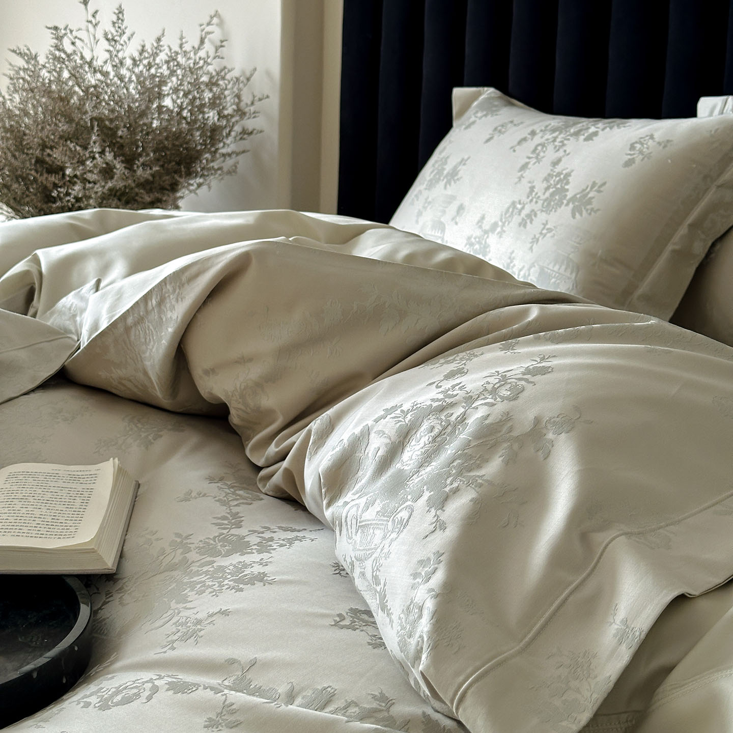 (总)MIU缪家居 2026新款色织提花棉麻四件套-月光织锦,本色,粉色,灰色