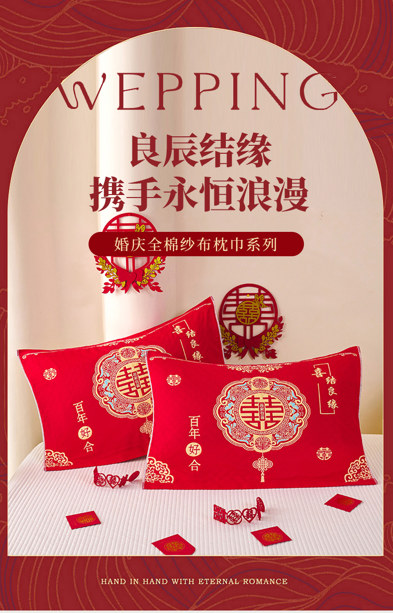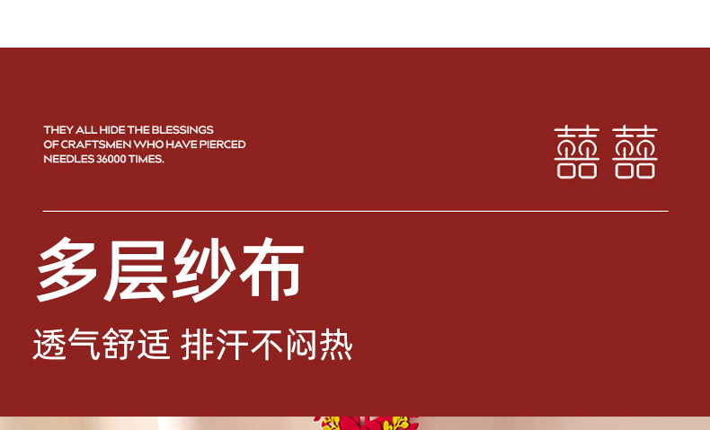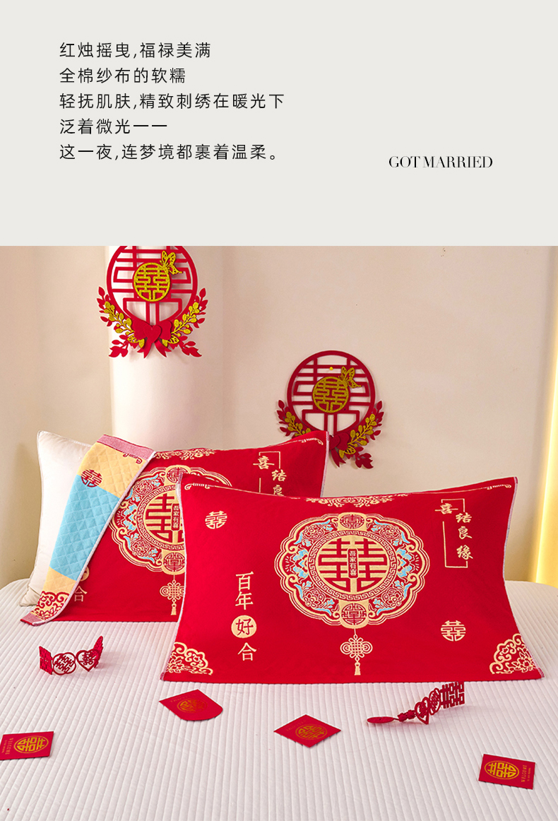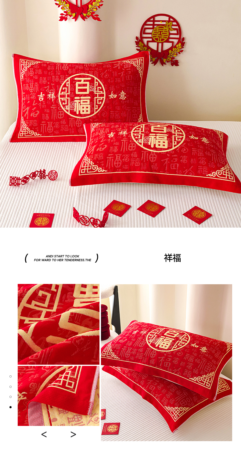 商品名称:悦然毛巾被 2025新款全棉三层纱大红枕巾 鸿福