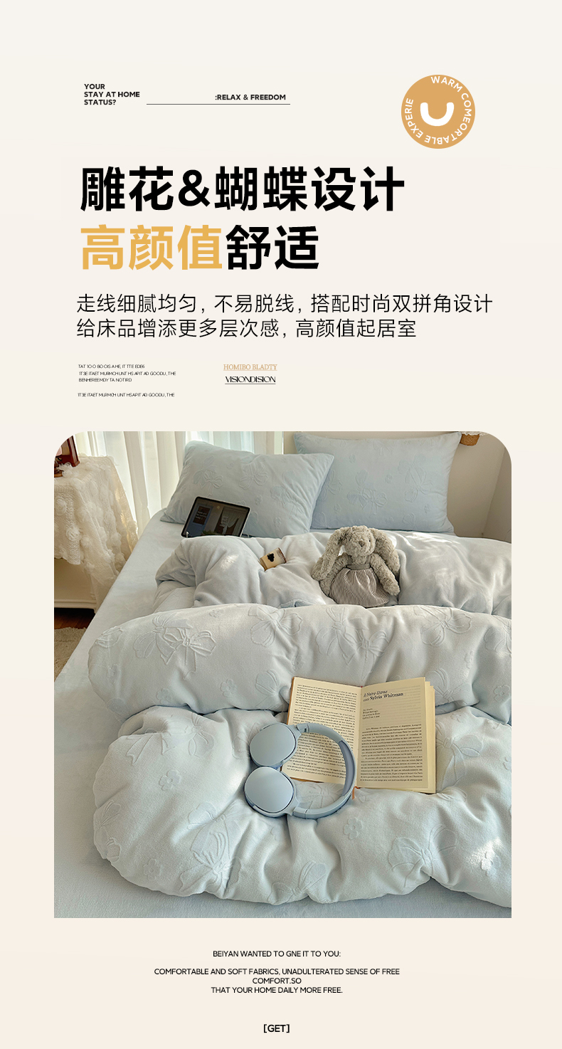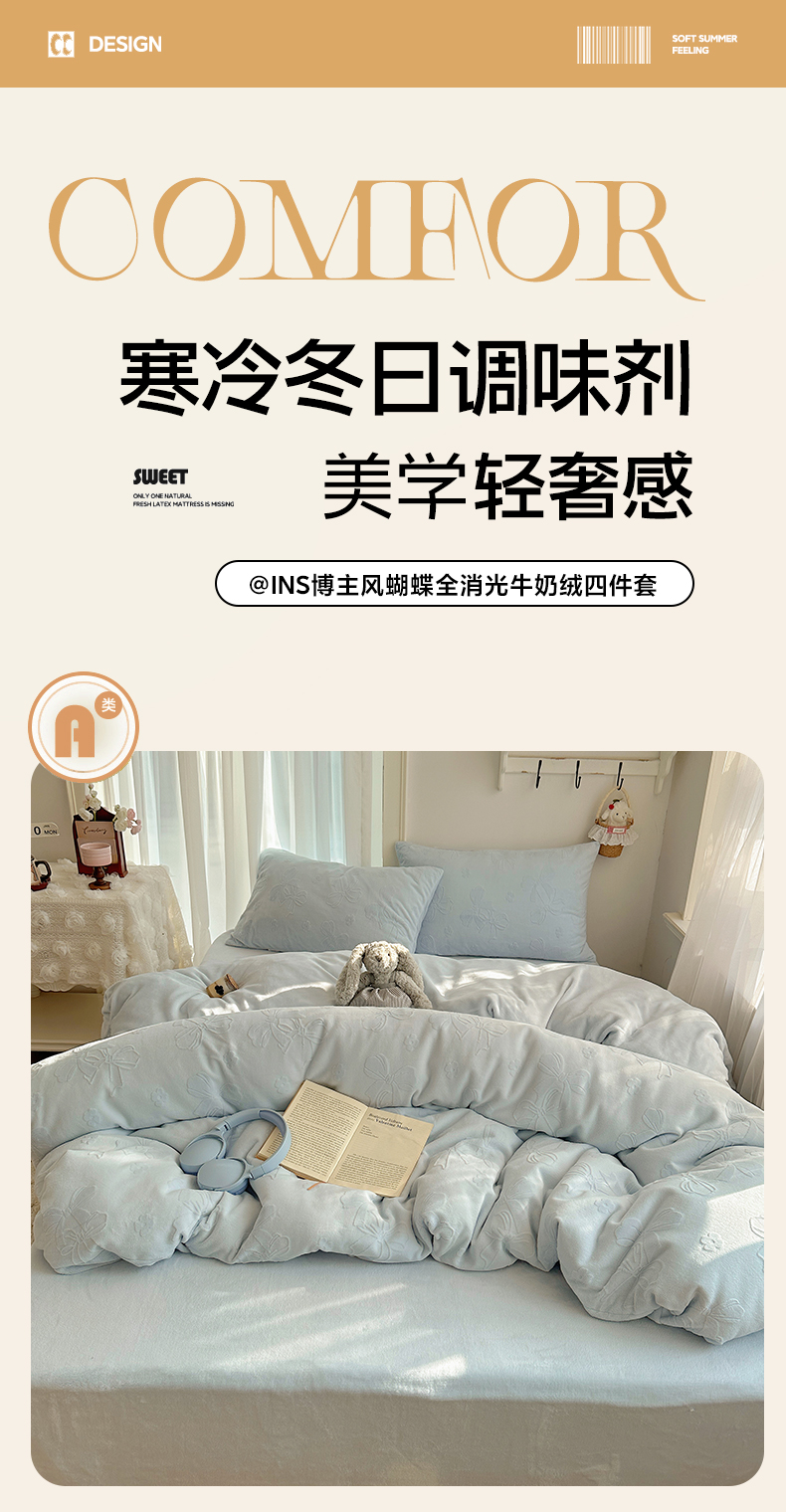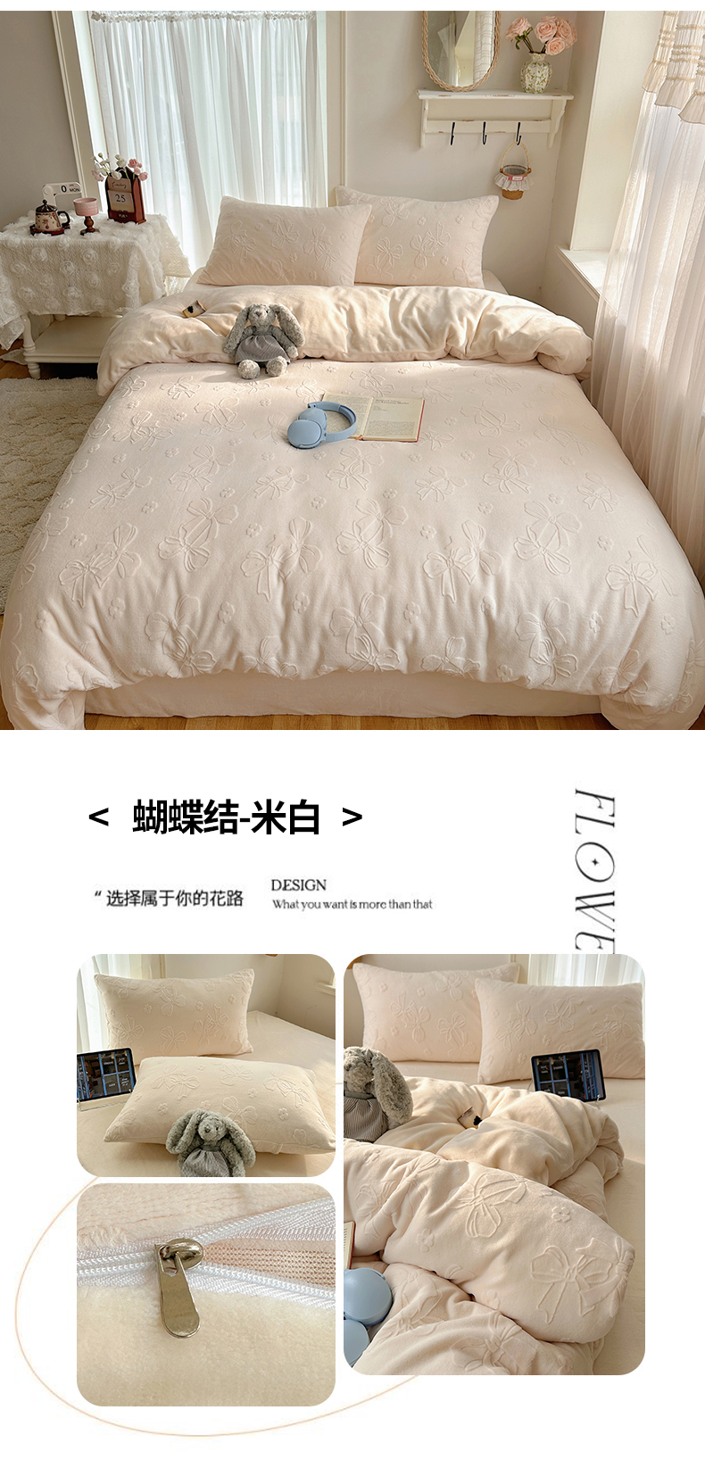 (总)瑞钰 2025新款ins博士风蝴蝶全消光雕花暗合牛奶绒四件套,蝴蝶结-米白,蝴蝶结-浅粉,蝴蝶结-浅蓝,蝴蝶结-浅紫