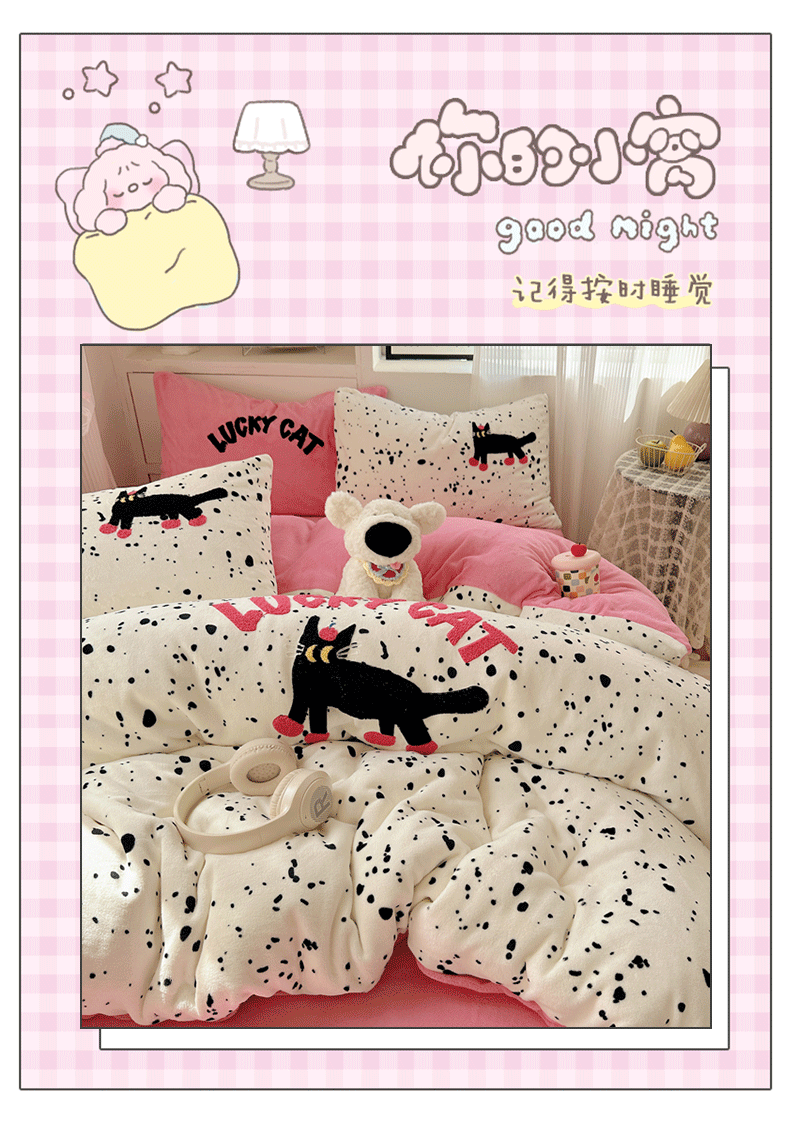 当前位置: 91家纺网 > 商品网购 > 床品套件 > 四件套 > 牛奶绒四件套 > 繁花家居 2025新款牛奶绒毛巾绣格子猫红格子苹果猫四件套 点点酷夜猫