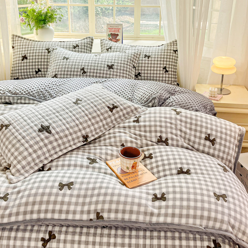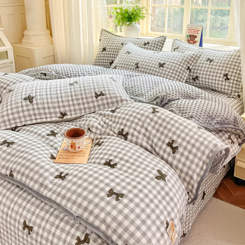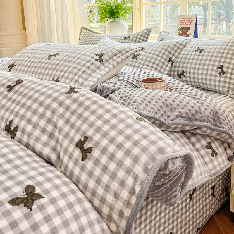 尚美家纺 2025冬季新品豆豆绒高克重床盖被套四件套 蝴蝶飞舞