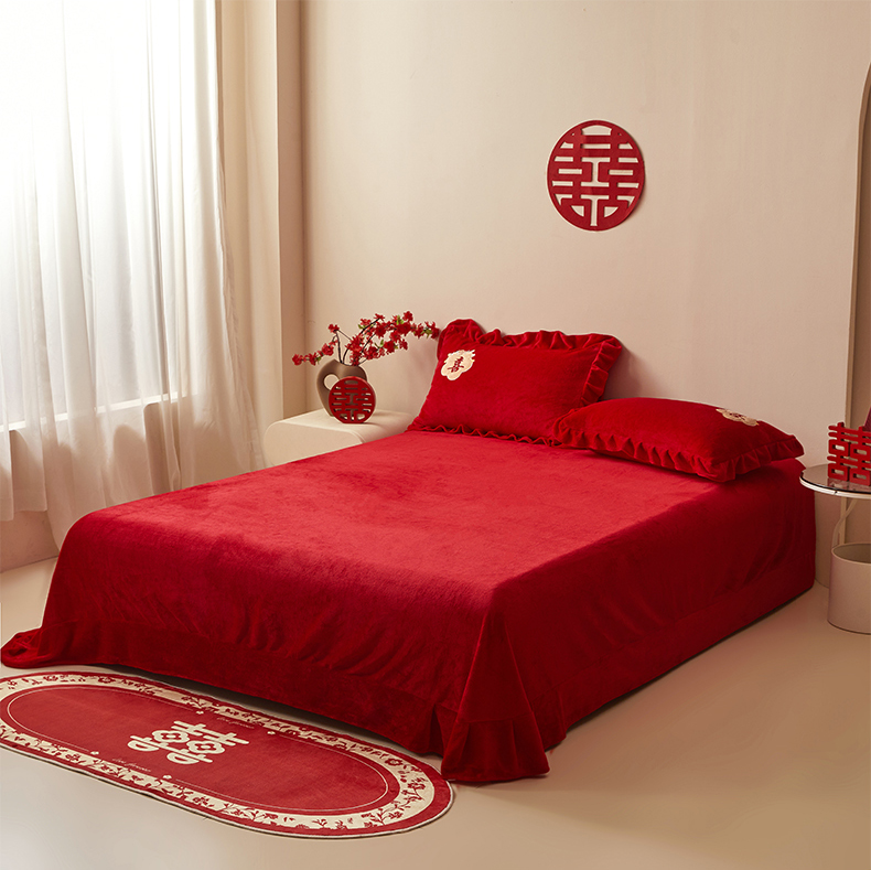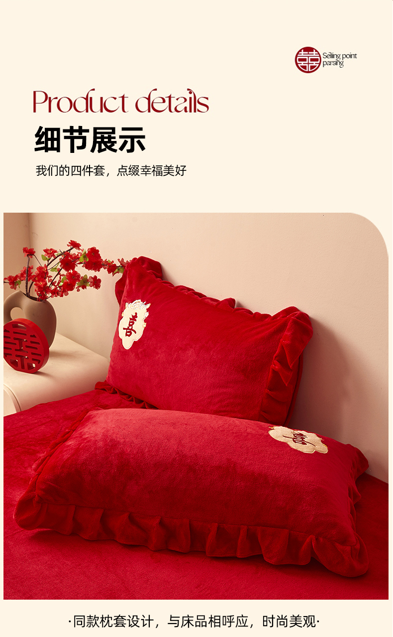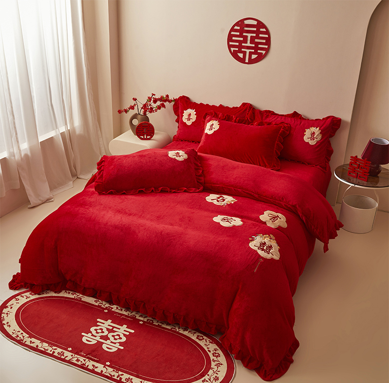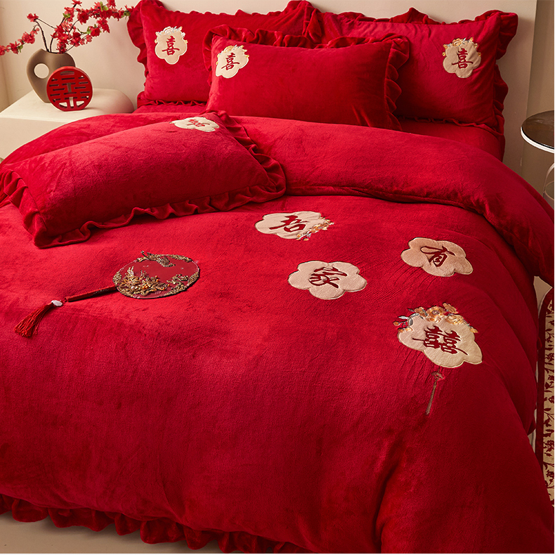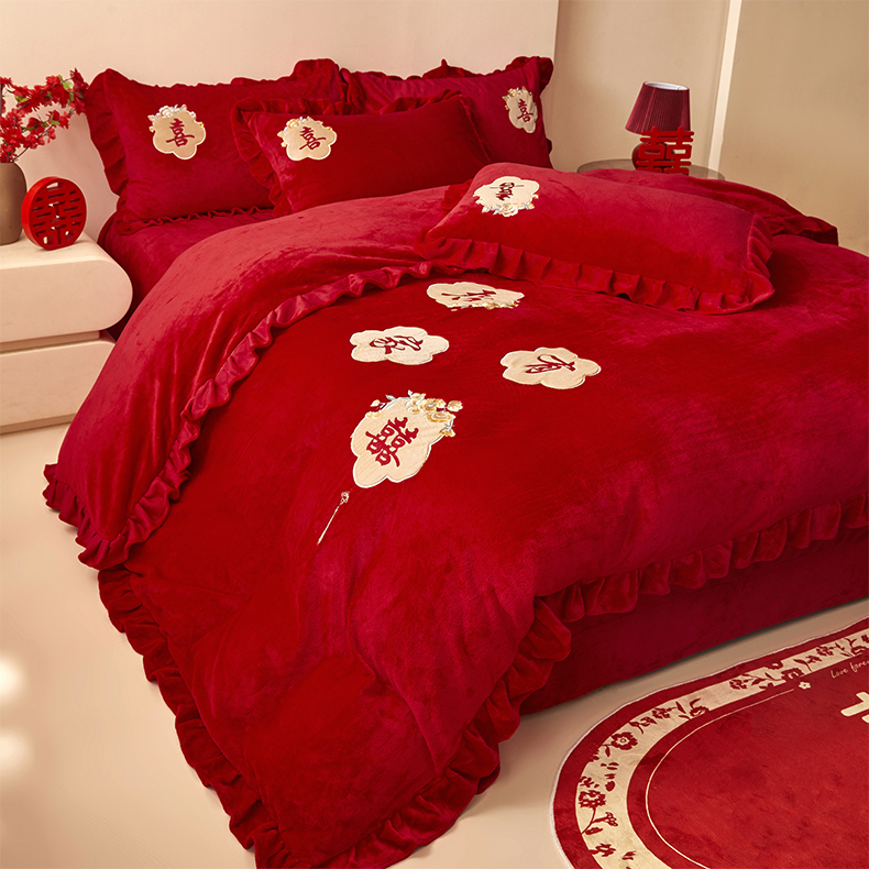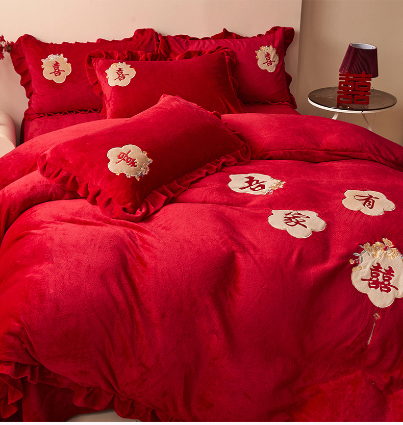 (总)千希家纺 2025新款220克牛奶绒贴布绣婚庆套件(提供买家秀),家有喜事,贴布款-喜樂,吾家有喜