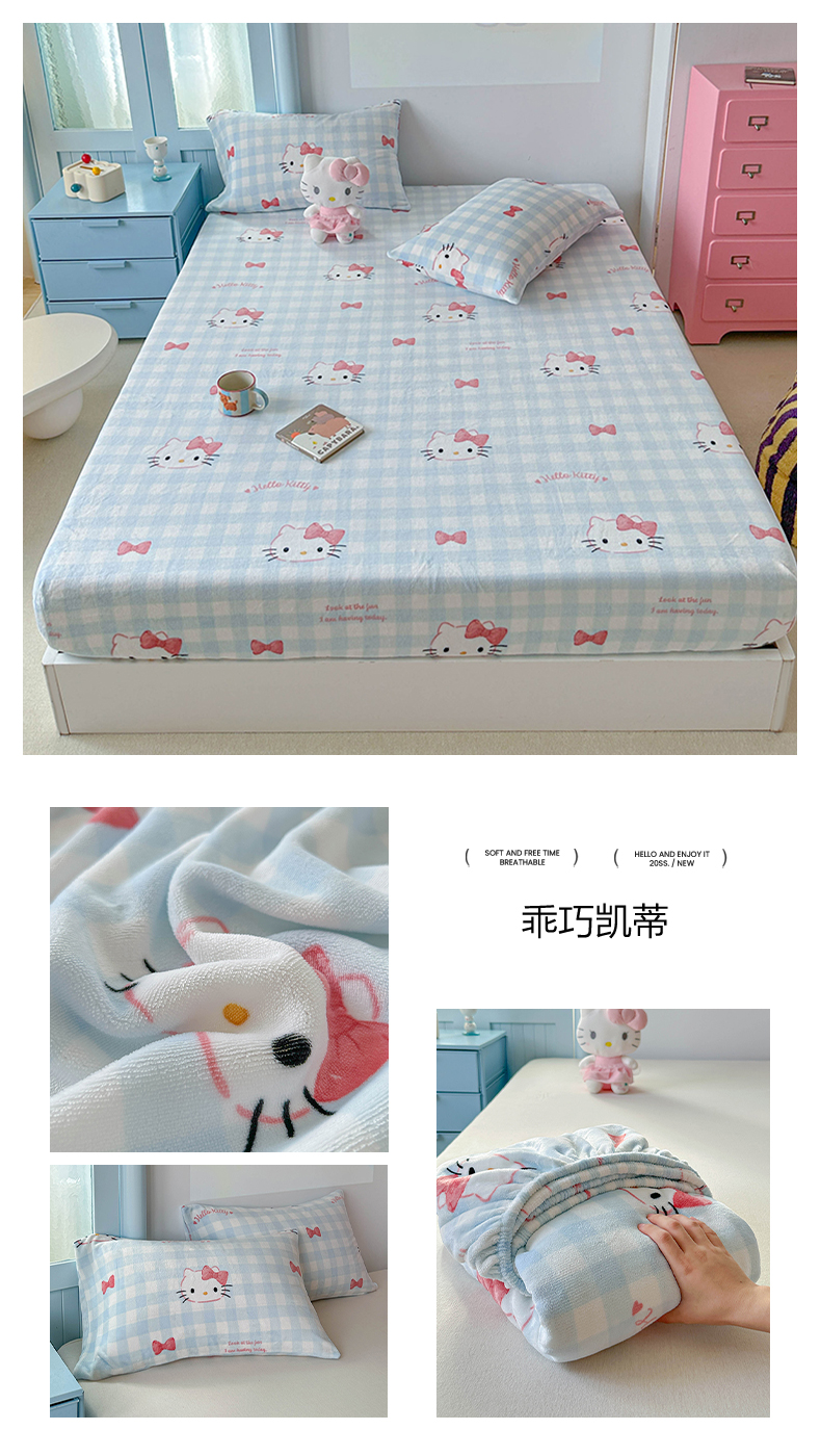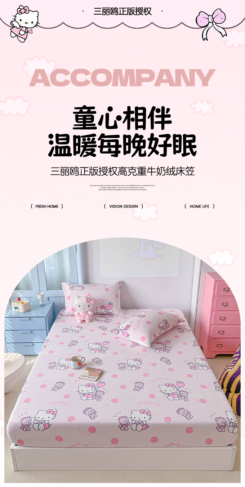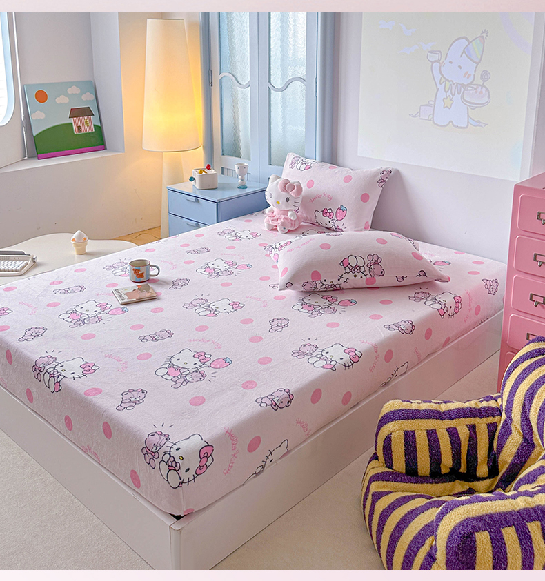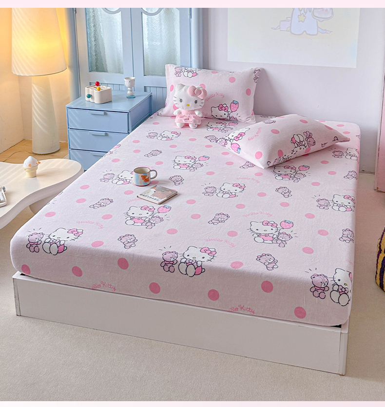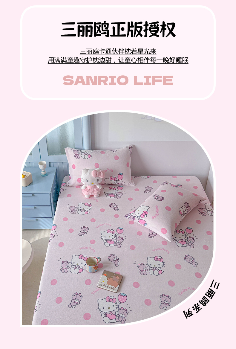 商品名称:爱丽丝 2025新款正版授权三丽鸥牛奶绒单品床笠枕套 泡泡凯蒂