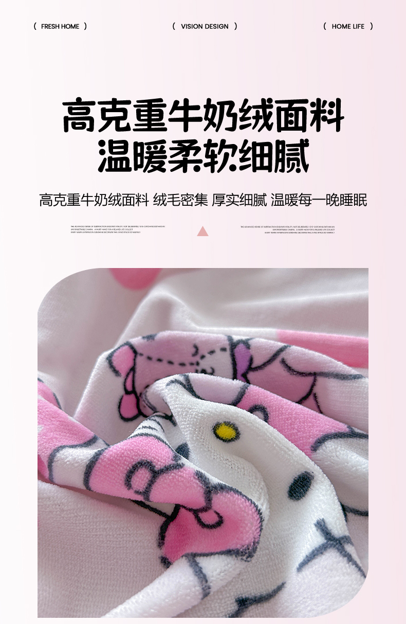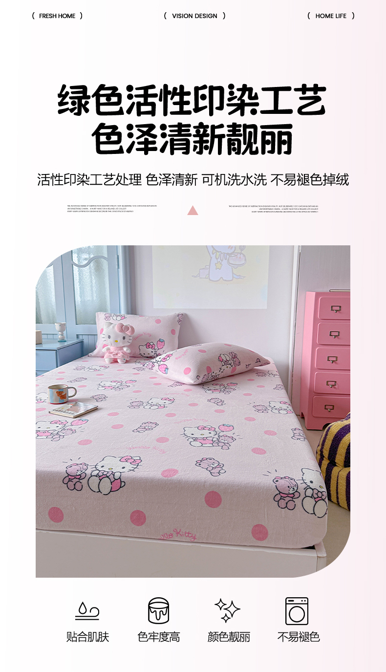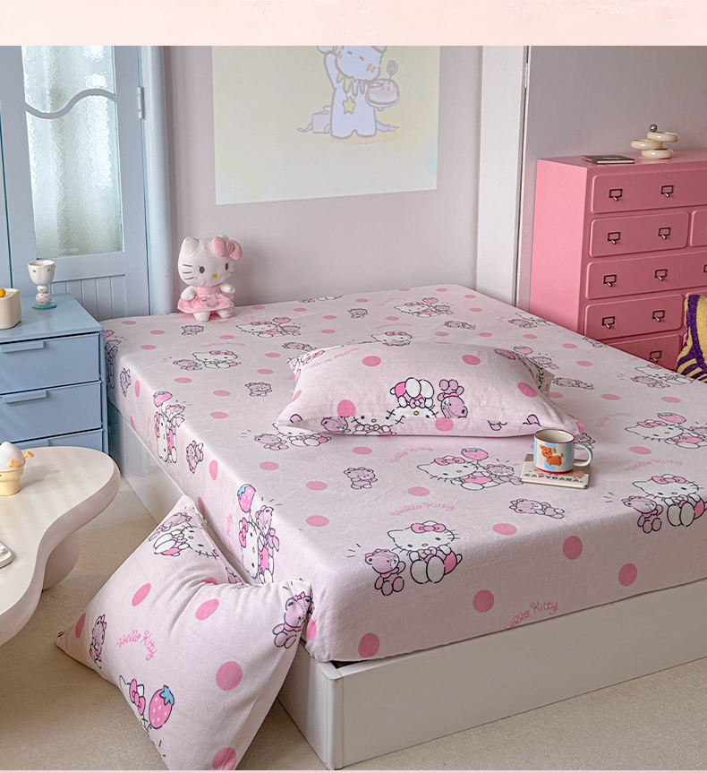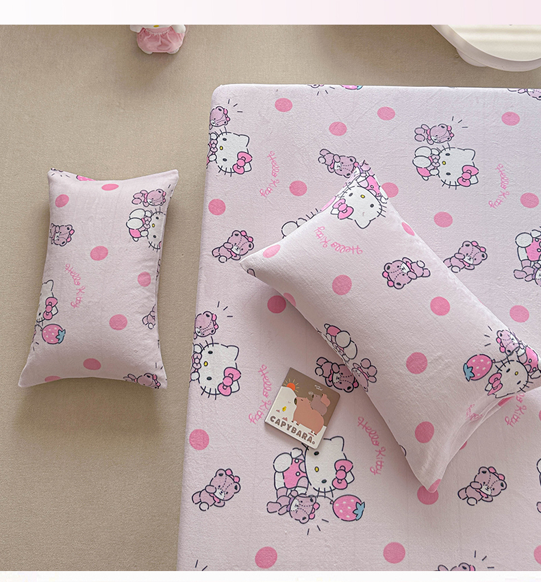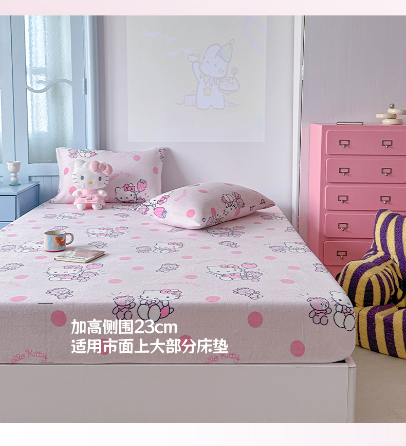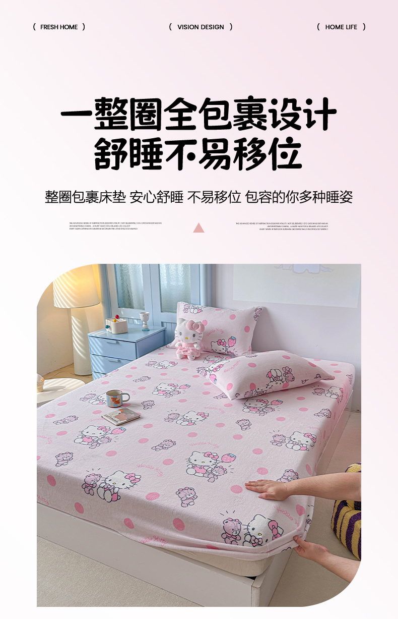 商品名称:爱丽丝 2025新款正版授权三丽鸥牛奶绒单品床笠枕套 泡泡凯蒂