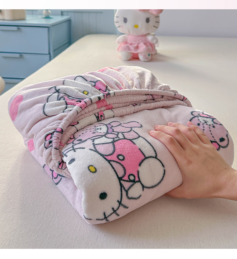 爱丽丝 2025新款正版授权三丽鸥牛奶绒单品床笠枕套 泡泡凯蒂