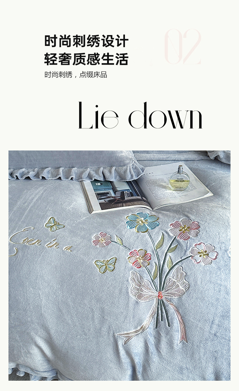 商品名称:董韵家纺 2025新款高克重 250克9-10斤牛奶绒 刺绣床单四件套系列 柔雾-云烟灰