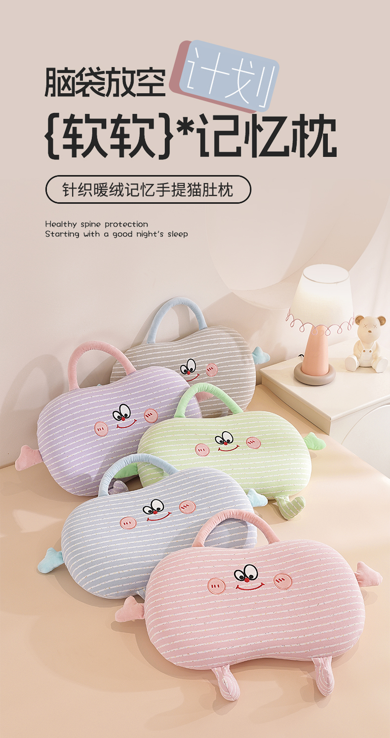 (总)仁宇枕业 2025新款亲肤暖绒彩虹纹搞怪手提猫肚记忆枕头枕芯,彩虹纹搞怪手提猫肚枕-粉色,彩虹纹搞怪手提猫肚枕灰色,彩虹纹搞怪手提猫肚枕-蓝色,彩虹纹搞怪手提猫肚枕-绿色,彩虹纹搞怪手提猫肚枕-紫色,组合图仅供展示不可下单