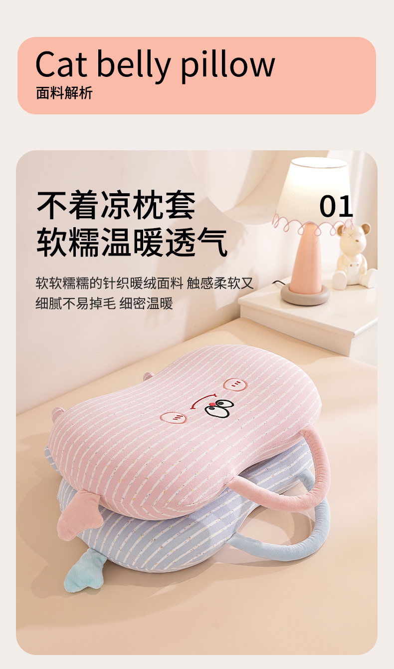 商品名称:(总)仁宇枕业 2025新款亲肤暖绒彩虹纹搞怪手提猫肚记忆枕头枕芯