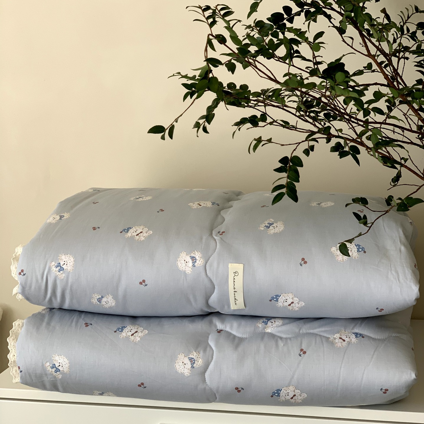 (总)汇庭 2025新款秋冬胖胖樱桃春秋被+樱桃菲菲床盖三件套,组合图下单仅供展示不可下单,粉色,绿色,米色