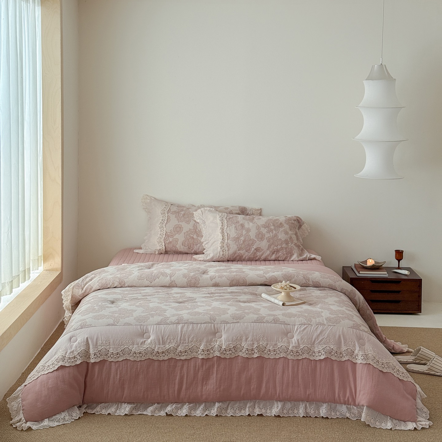 (总)汇庭 2025新款秋冬胖胖樱桃春秋被+樱桃菲菲床盖三件套,组合图下单仅供展示不可下单,粉色,绿色,米色