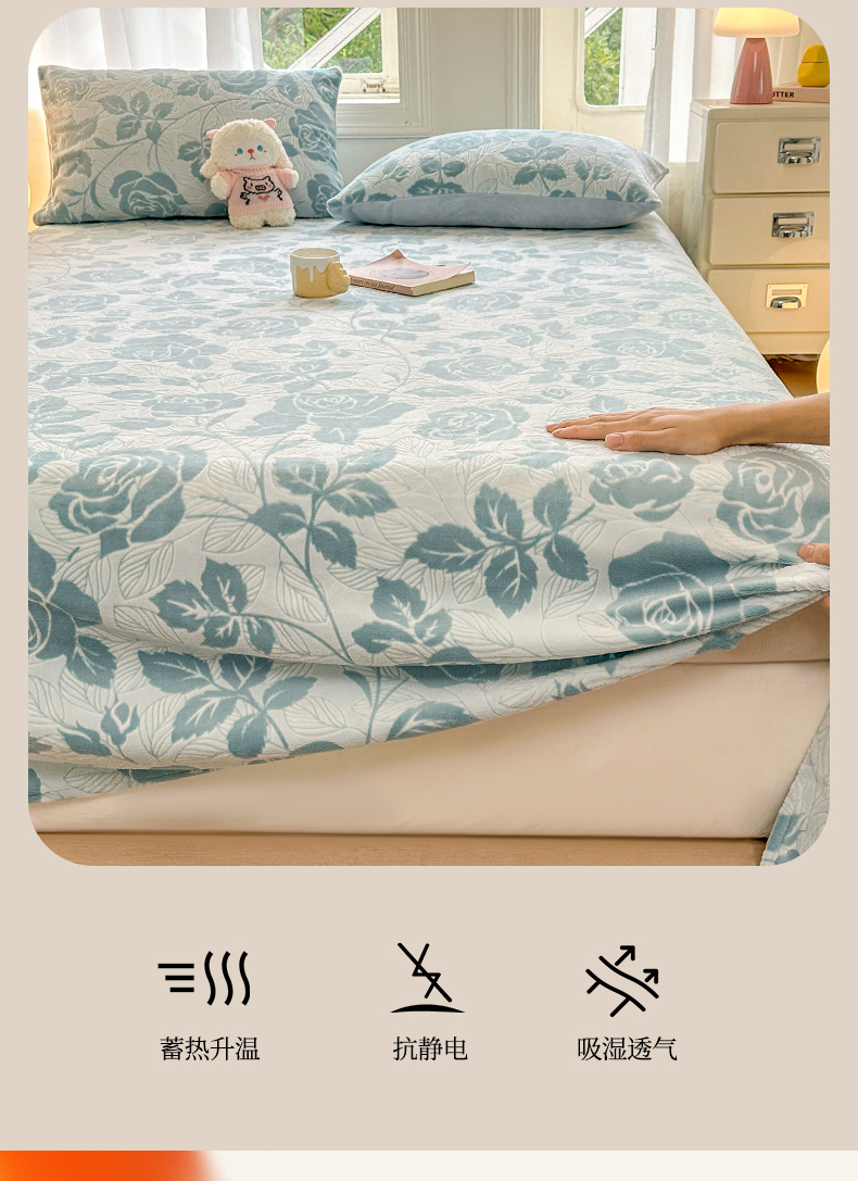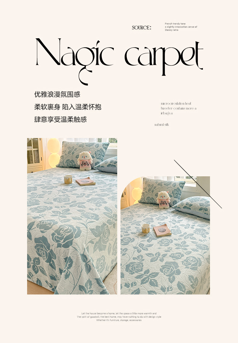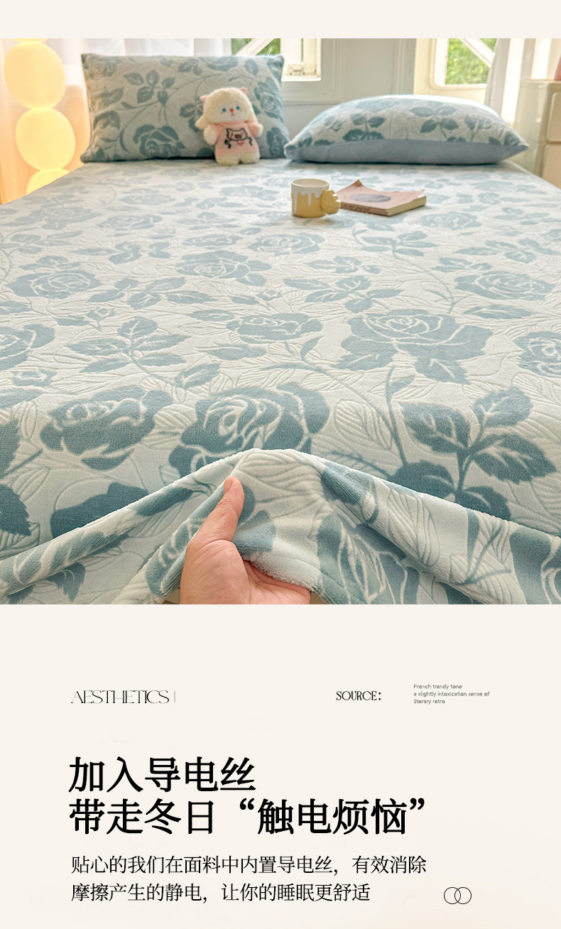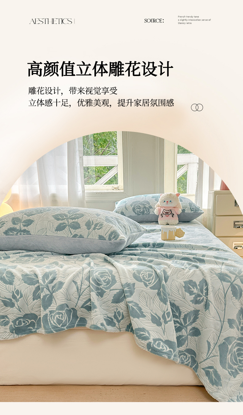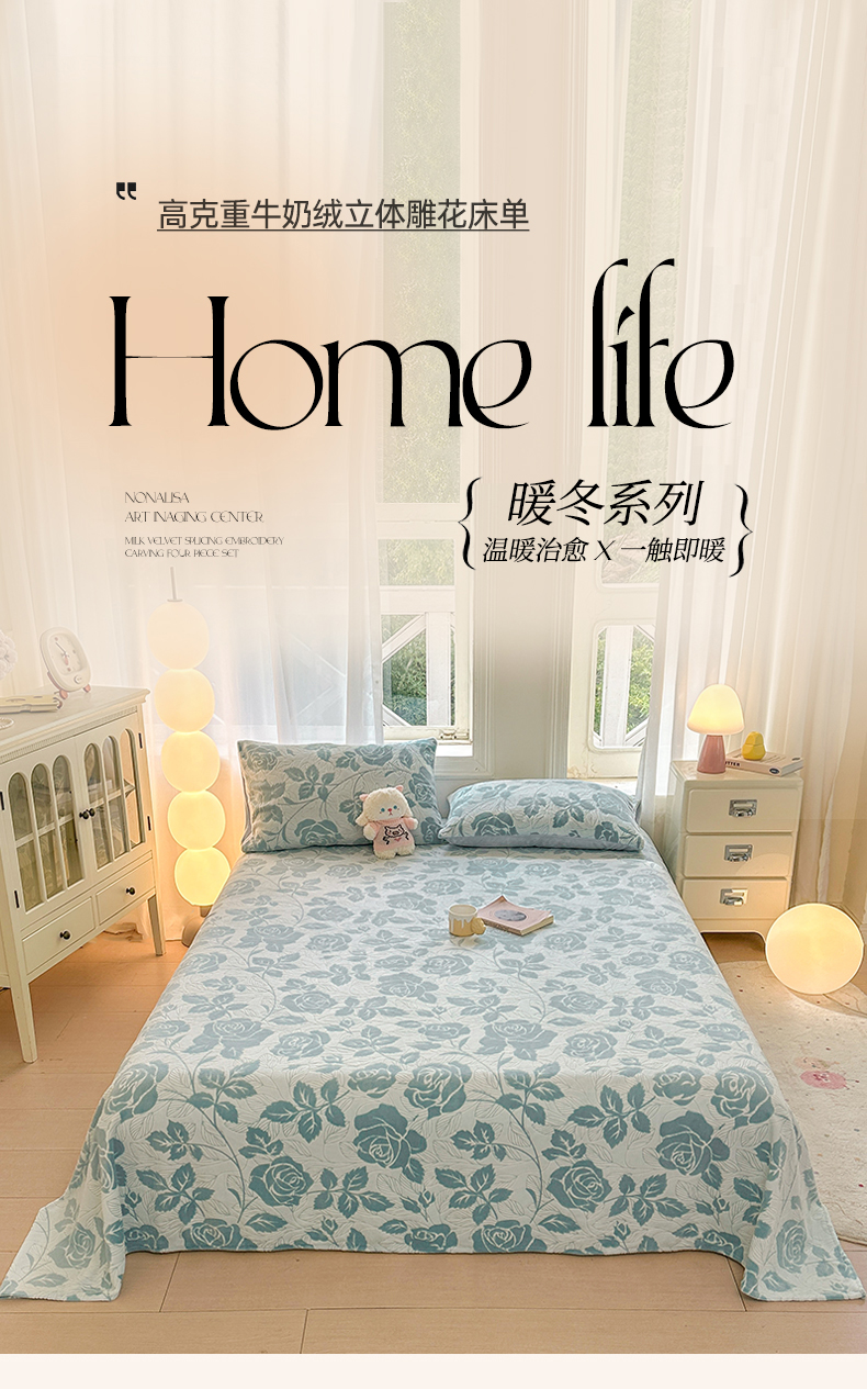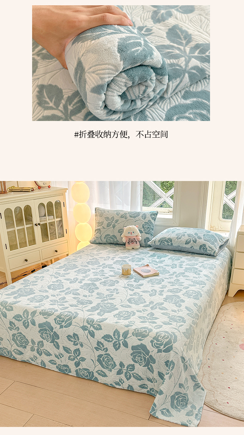 • 91家纺网 家纺一手货源 找家纺 灰鲸 2025新款立体雕花牛奶绒床单单床单单品床单单件 爱意-蓝