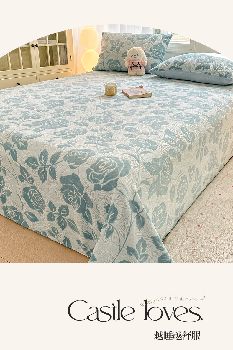 灰鲸 2025新款立体雕花牛奶绒床单单床单单品床单单件 爱意-蓝