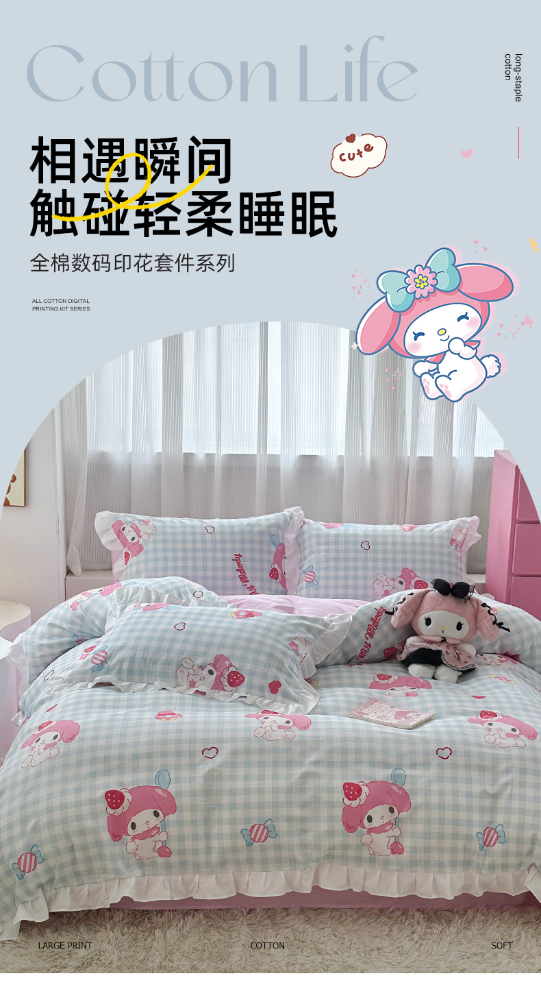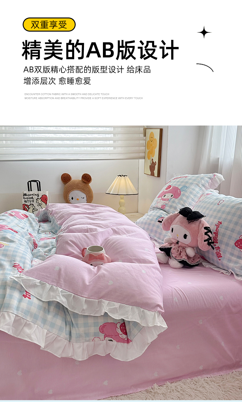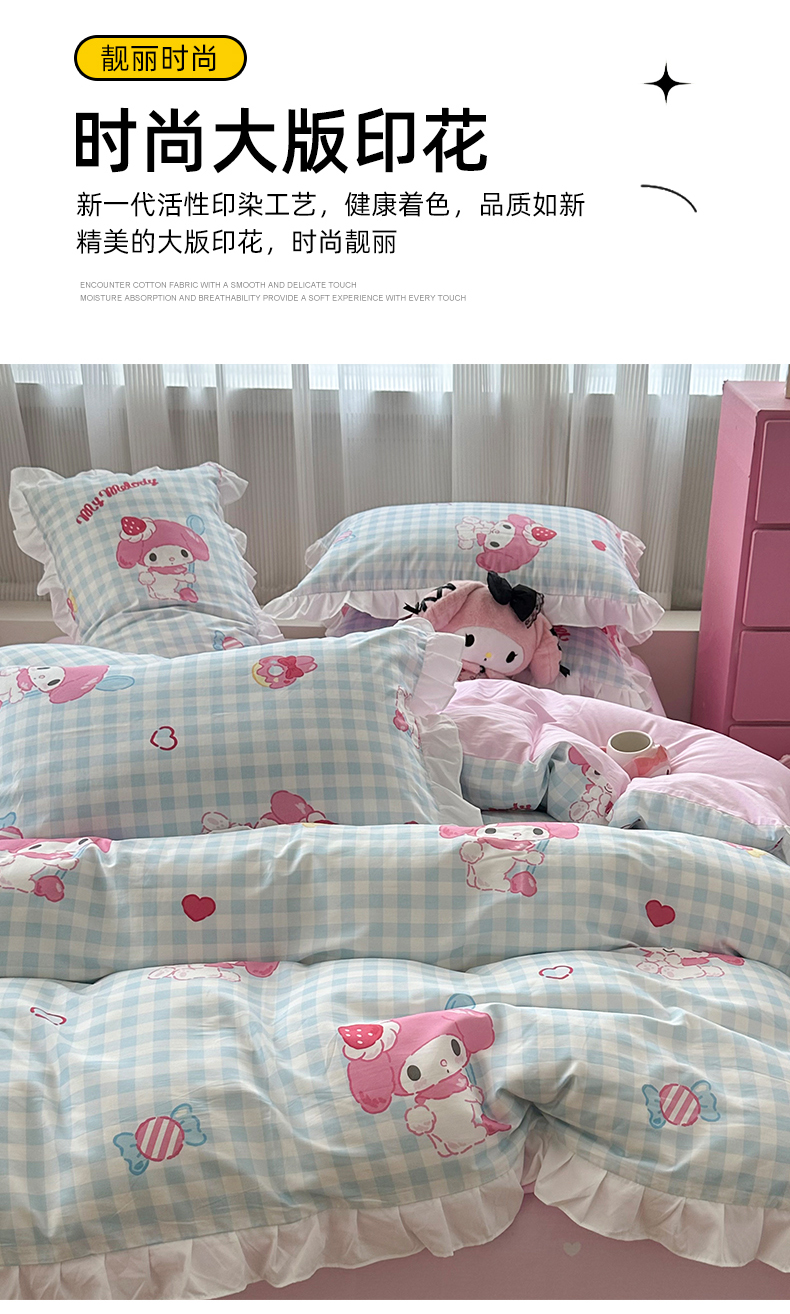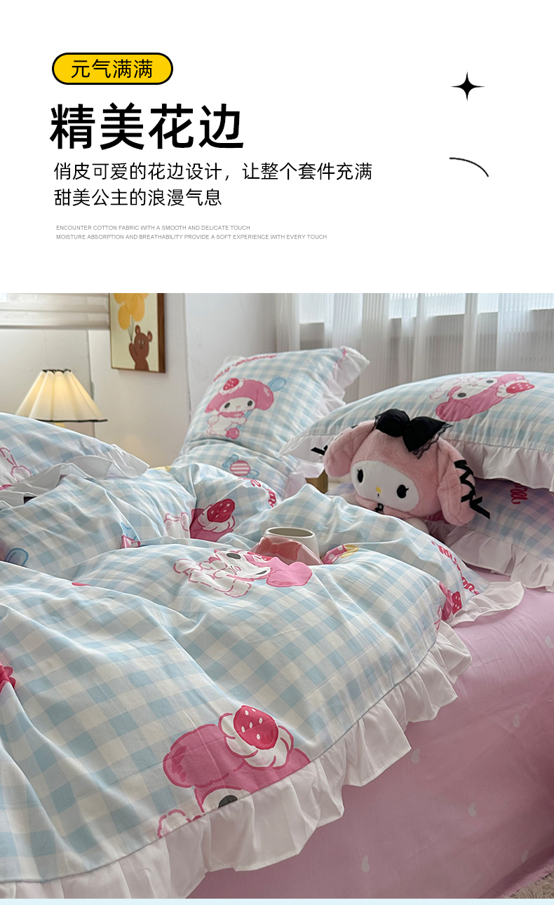 当前位置: 91家纺网 > 商品网购 > 床品套件 > 四件套 > 全棉普通四件套 > 玉元坊 2025新款全棉纯棉美乐蒂白花边款式四件套 乖乖美乐蒂-白花边款
