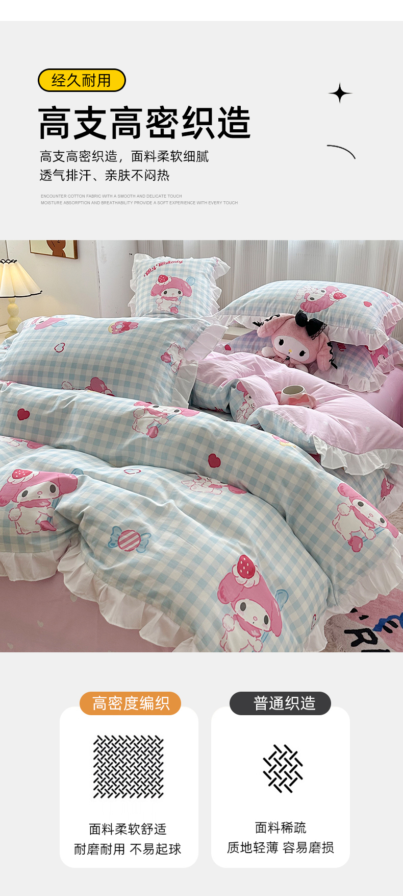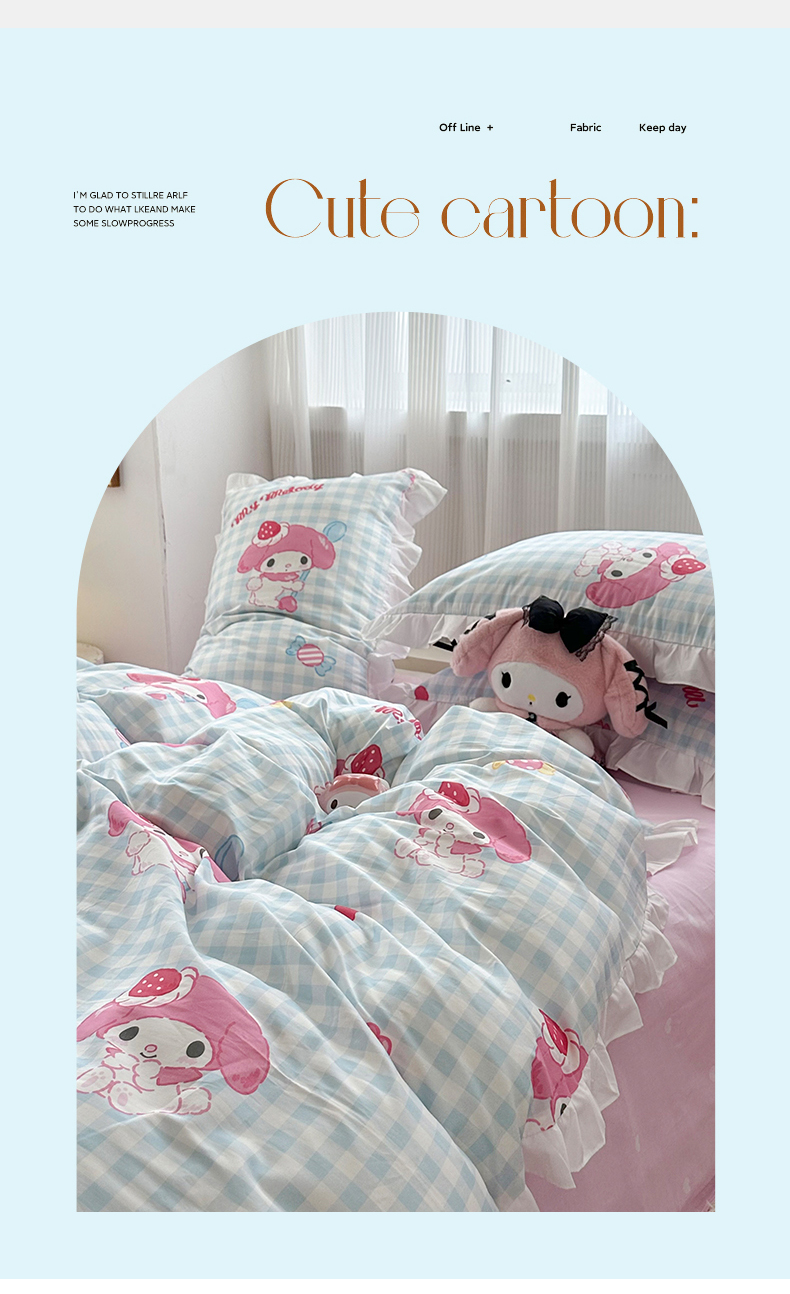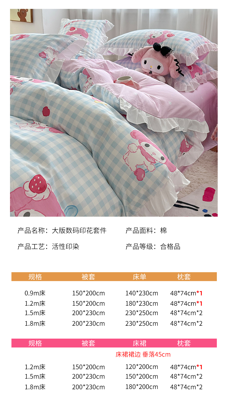 当前位置: 91家纺网 > 商品网购 > 床品套件 > 四件套 > 全棉普通四件套 > 玉元坊 2025新款全棉纯棉美乐蒂白花边款式四件套 乖乖美乐蒂-白花边款