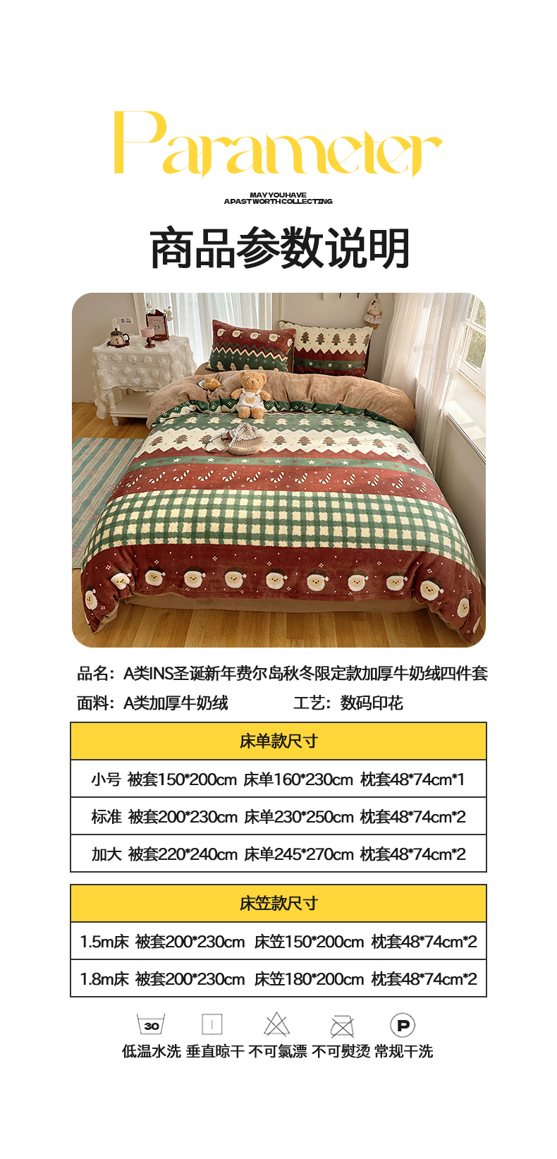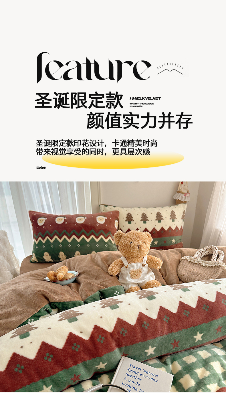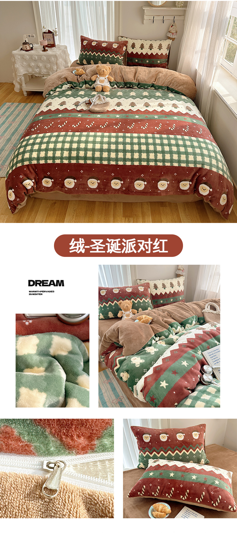 当前位置: 91家纺网 > 商品网购 > 床品套件 > 四件套 > 牛奶绒四件套 > 桃子家居 2025新款A类ins圣诞新年费尔岛秋冬限定款加厚牛奶绒系列四件套 绒-圣诞派对红