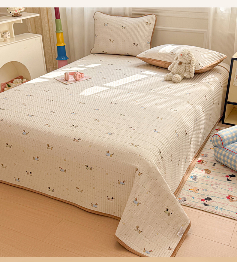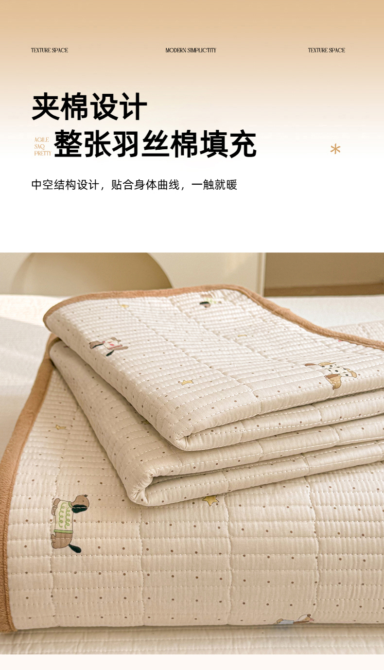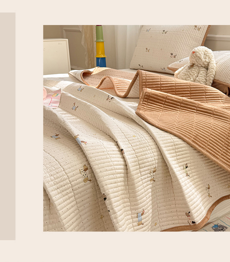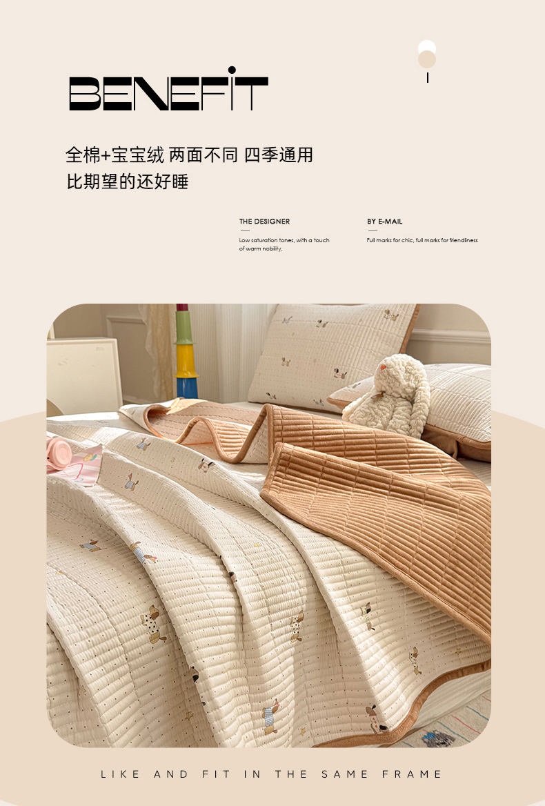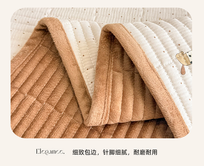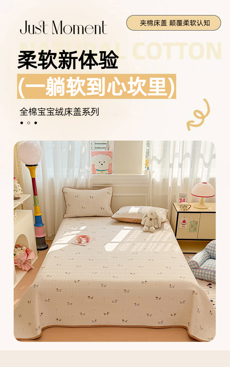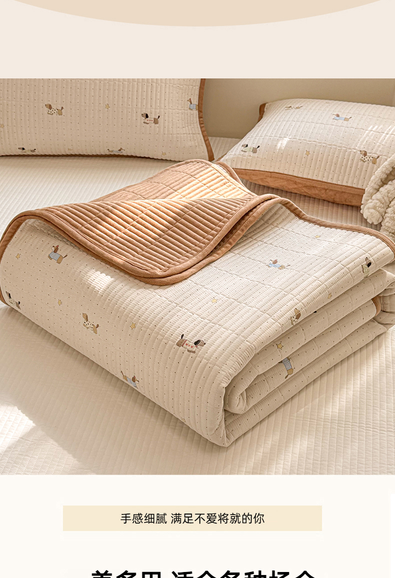 • 91家纺网 家纺一手货源 找家纺 简宜家居(朝初家纺) 2025新款A面100%全棉B面宝宝绒棉绒包边床盖正反两用 点点腊肠