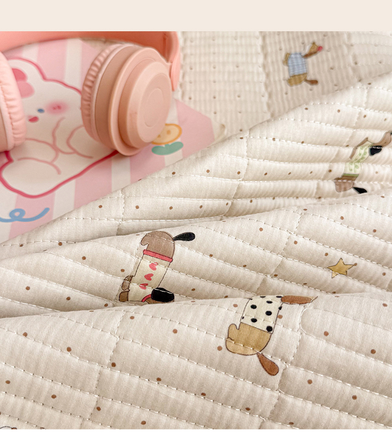 简宜家居(朝初家纺) 2025新款A面100%全棉B面宝宝绒棉绒包边床盖正反两用 点点腊肠