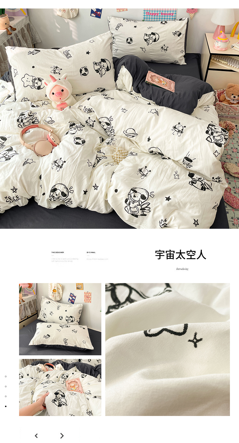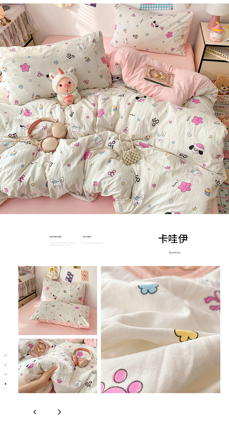 当前位置: 91家纺网 > 商品网购 > 床品套件 > 四件套 > 水洗棉四件套 > 梦卓家纺 2025新款超柔水洗棉印花双层纱卡通小清新四件套 木马小布
