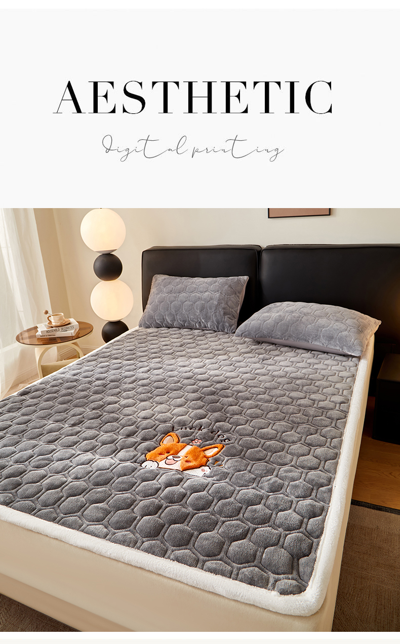 永旺家纺 2025新款宝宝牛奶绒床护垫床垫-柯基 柯基-天空蓝