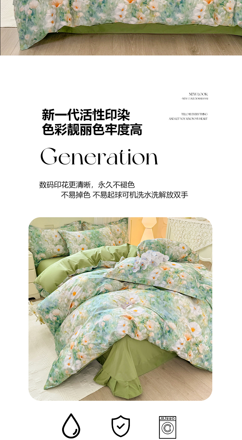 红日子纺织品 2025新款全棉纯棉数码印花四件套 芳若-绿