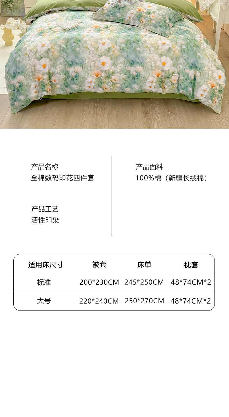 商品名称:红日子纺织品 2025新款全棉纯棉数码印花四件套 芳若-绿