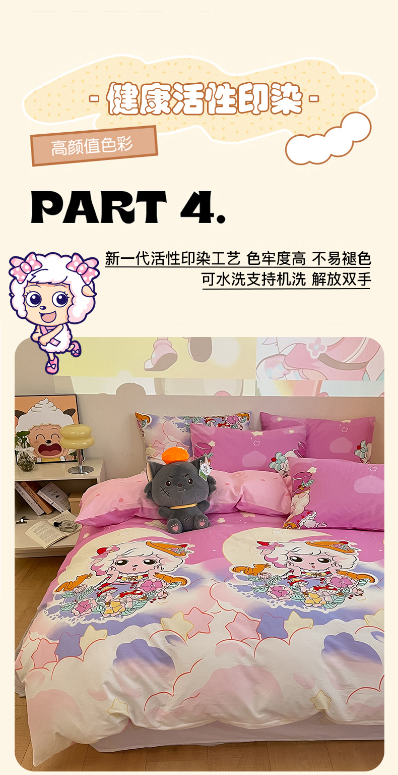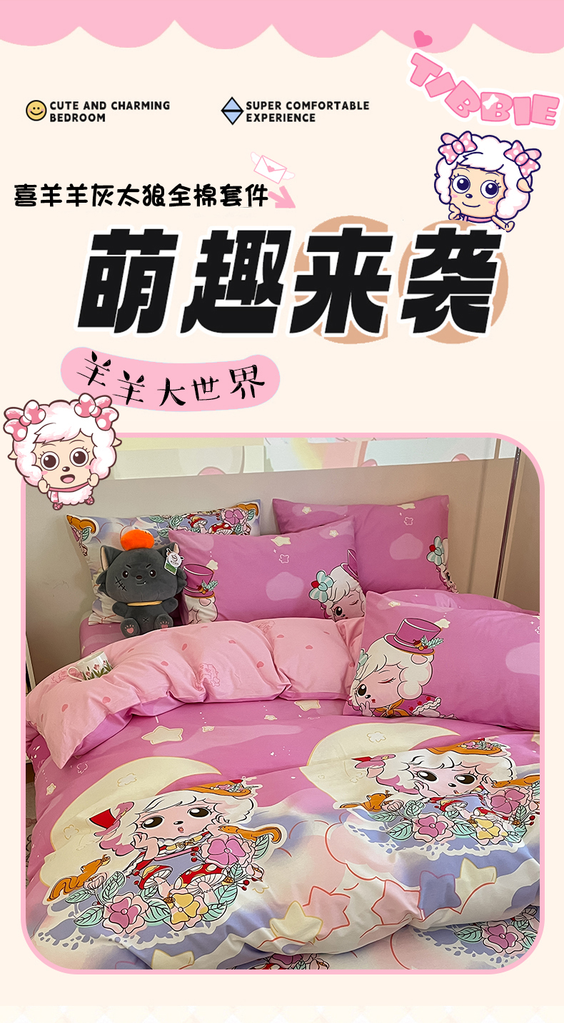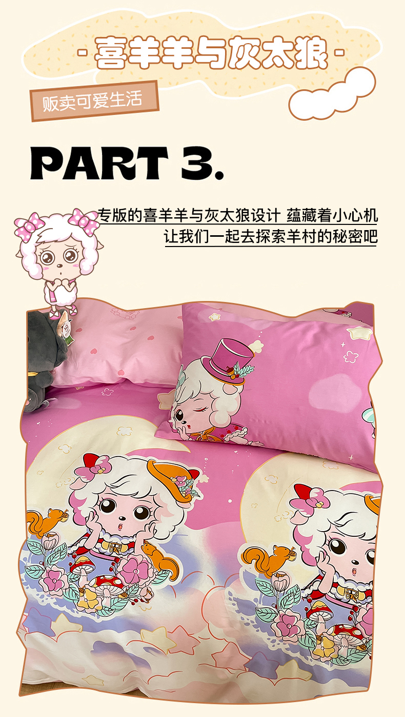 当前位置: 91家纺网 > 商品网购 > 床品套件 > 四件套 > 全棉普通四件套 > 金鑫汇家纺 2025新款喜羊羊与灰太狼全棉四件套 月光精灵