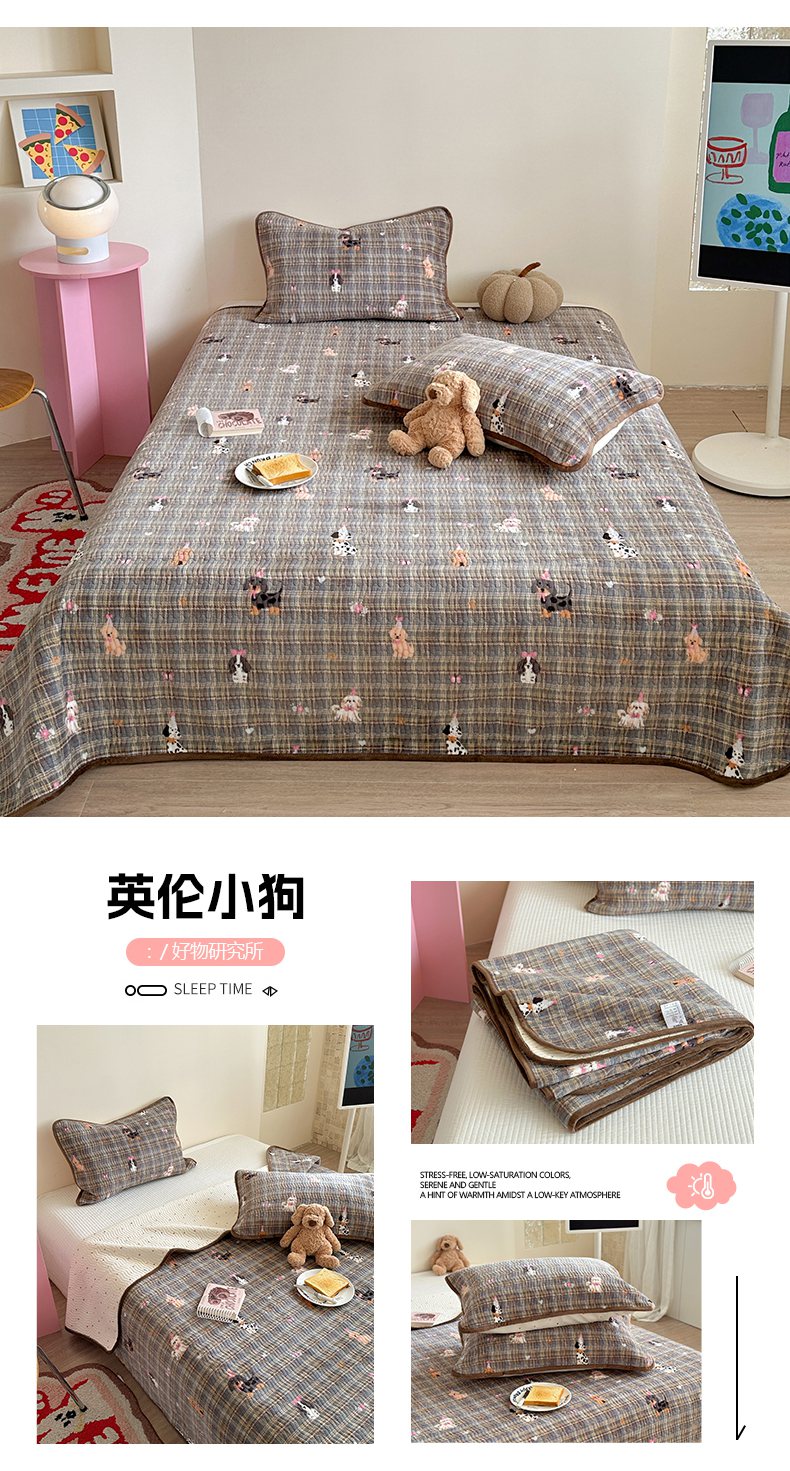 (总)暖生活 2025新款高克重牛奶绒床盖三件套,点点狗,粉豹纹猫咪,粉兔拼图,酣睡小喵,蝴蝶结拼图,萝莉小熊,圣诞小咪,小飞机,小象喝茶,信封小熊,英伦小狗,组合