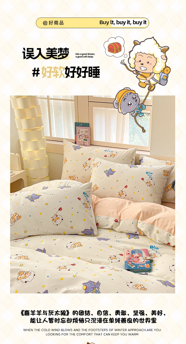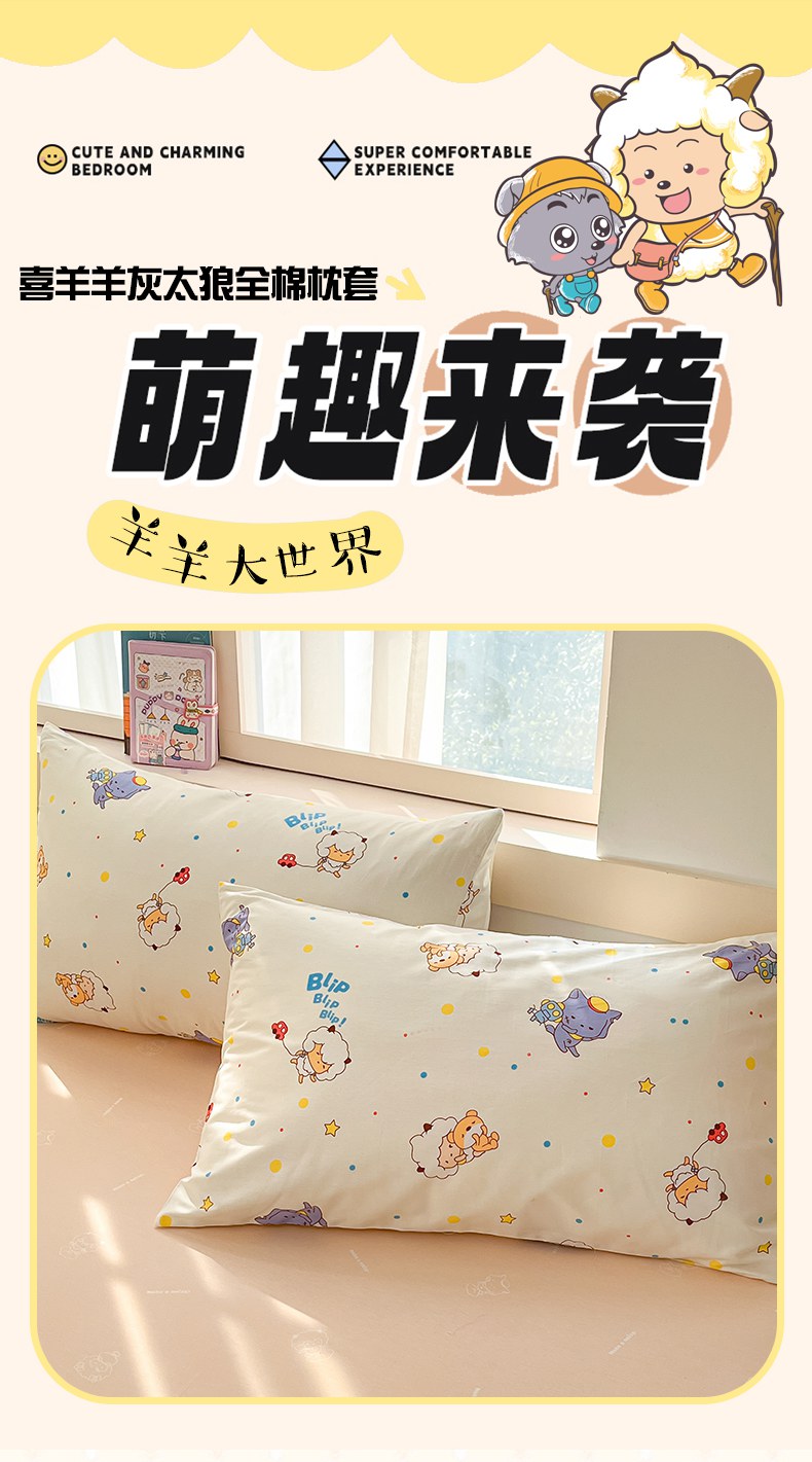 金鑫汇家纺 2025新款喜羊羊与灰太狼全棉单品枕套 困困小狼羊