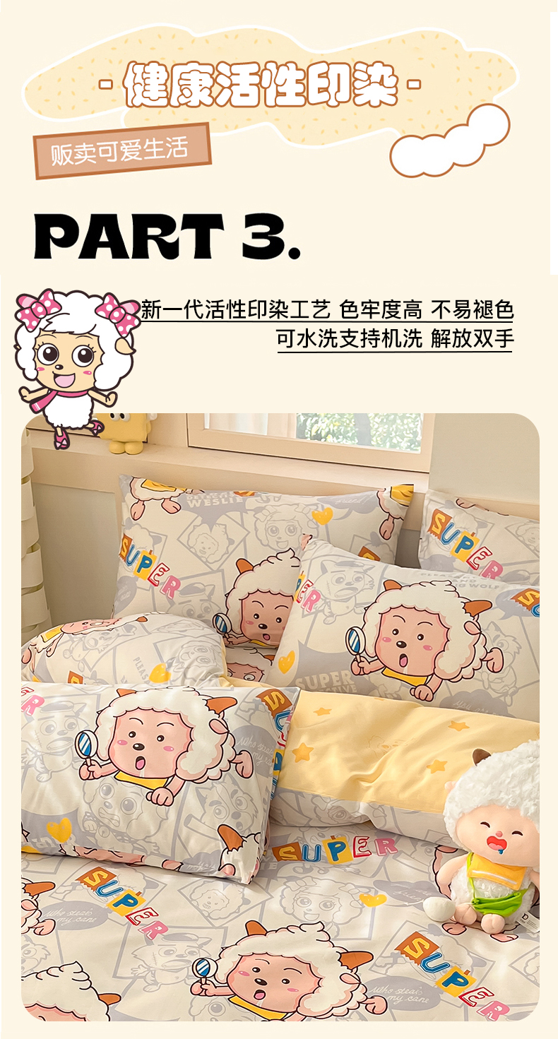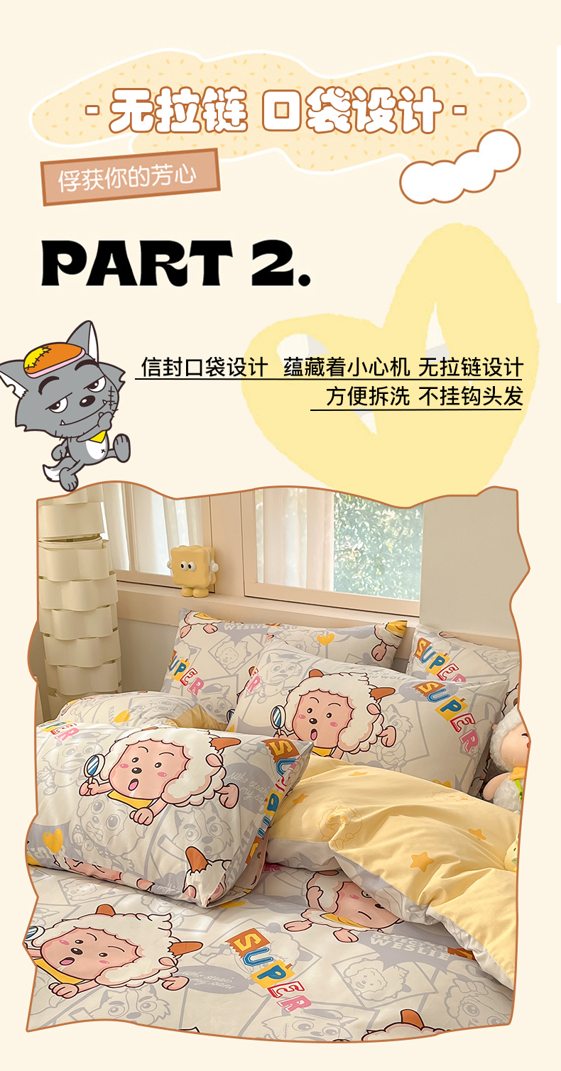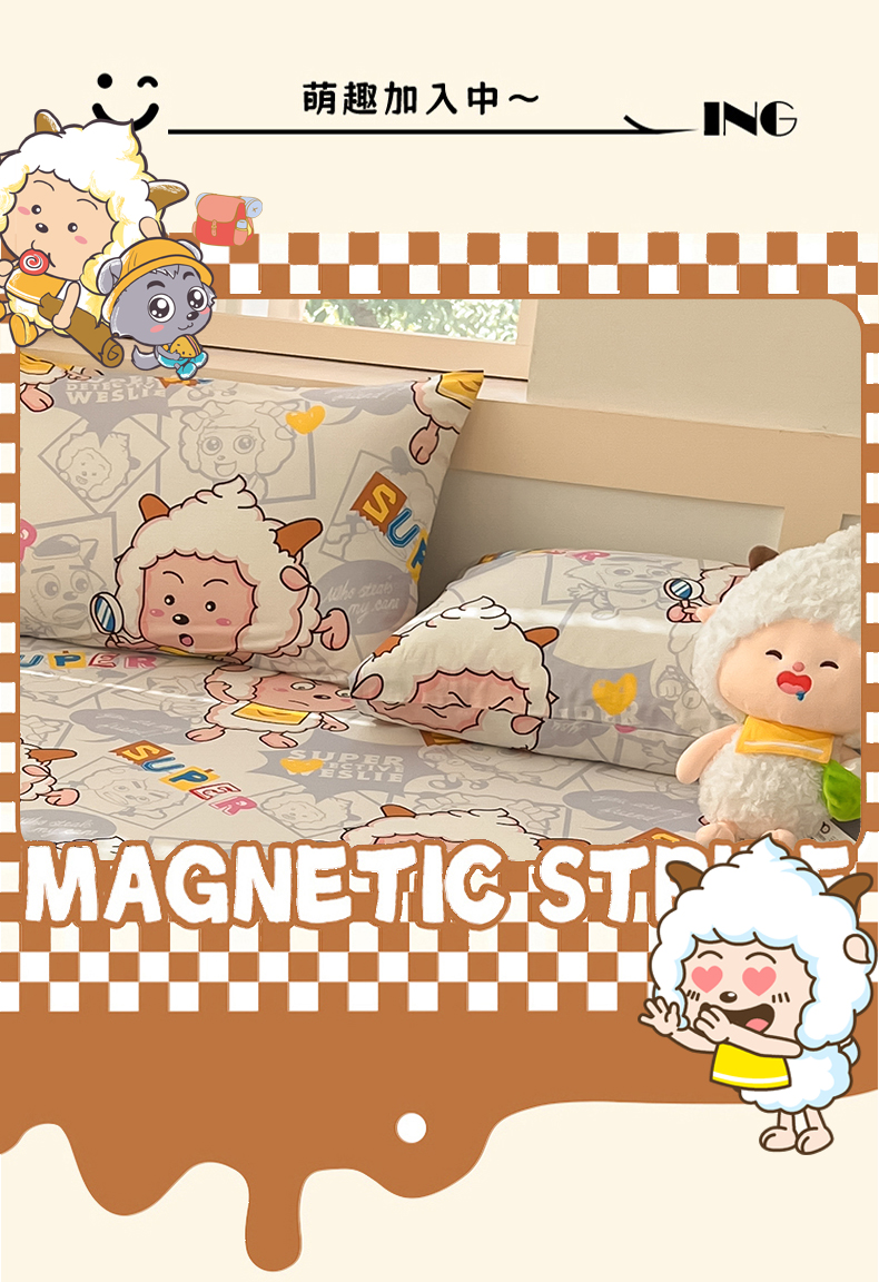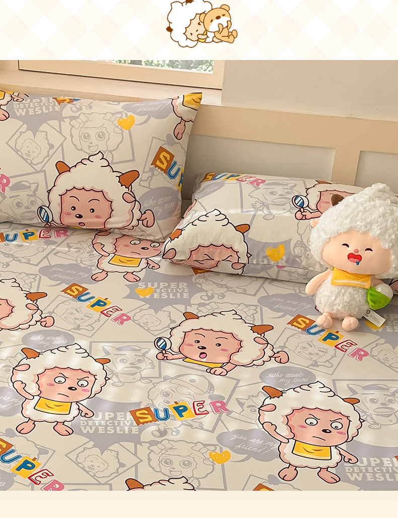 金鑫汇家纺 2025新款喜羊羊与灰太狼全棉单品枕套 探索懒羊羊