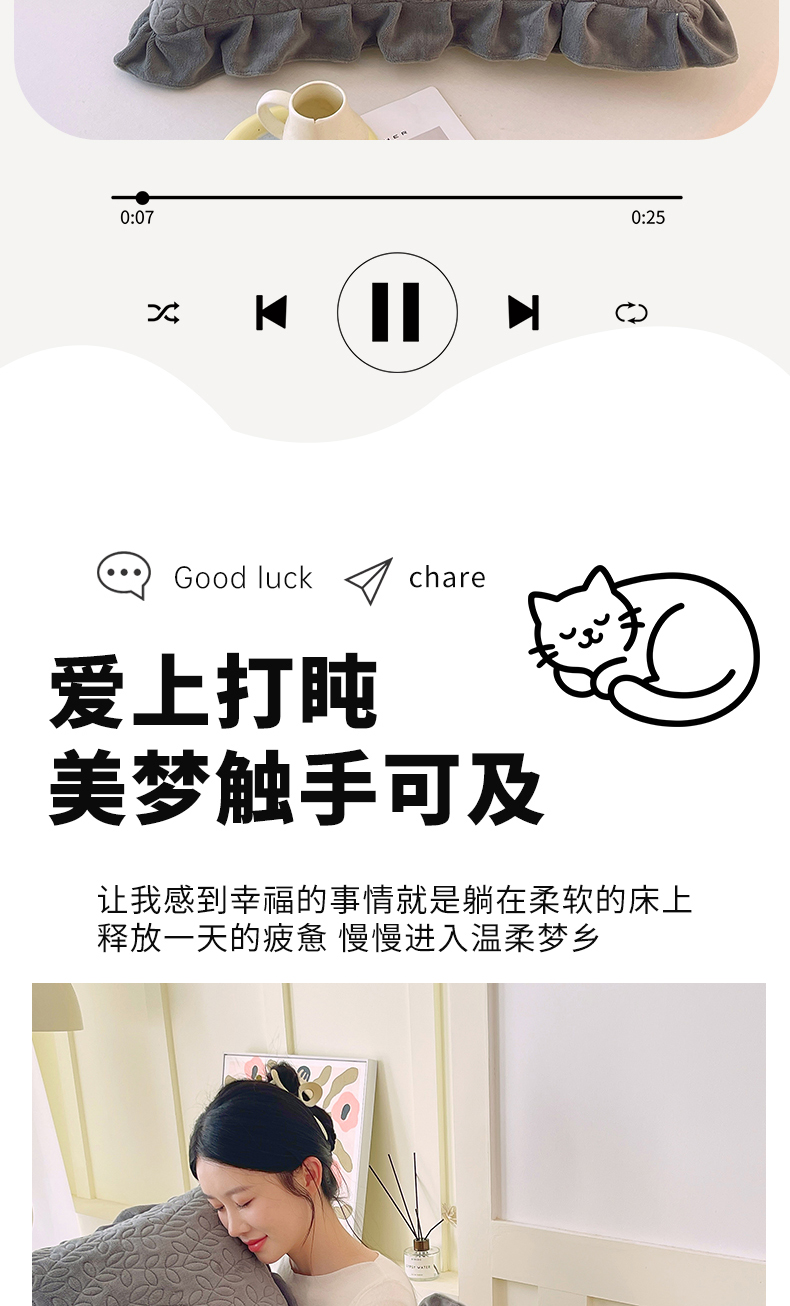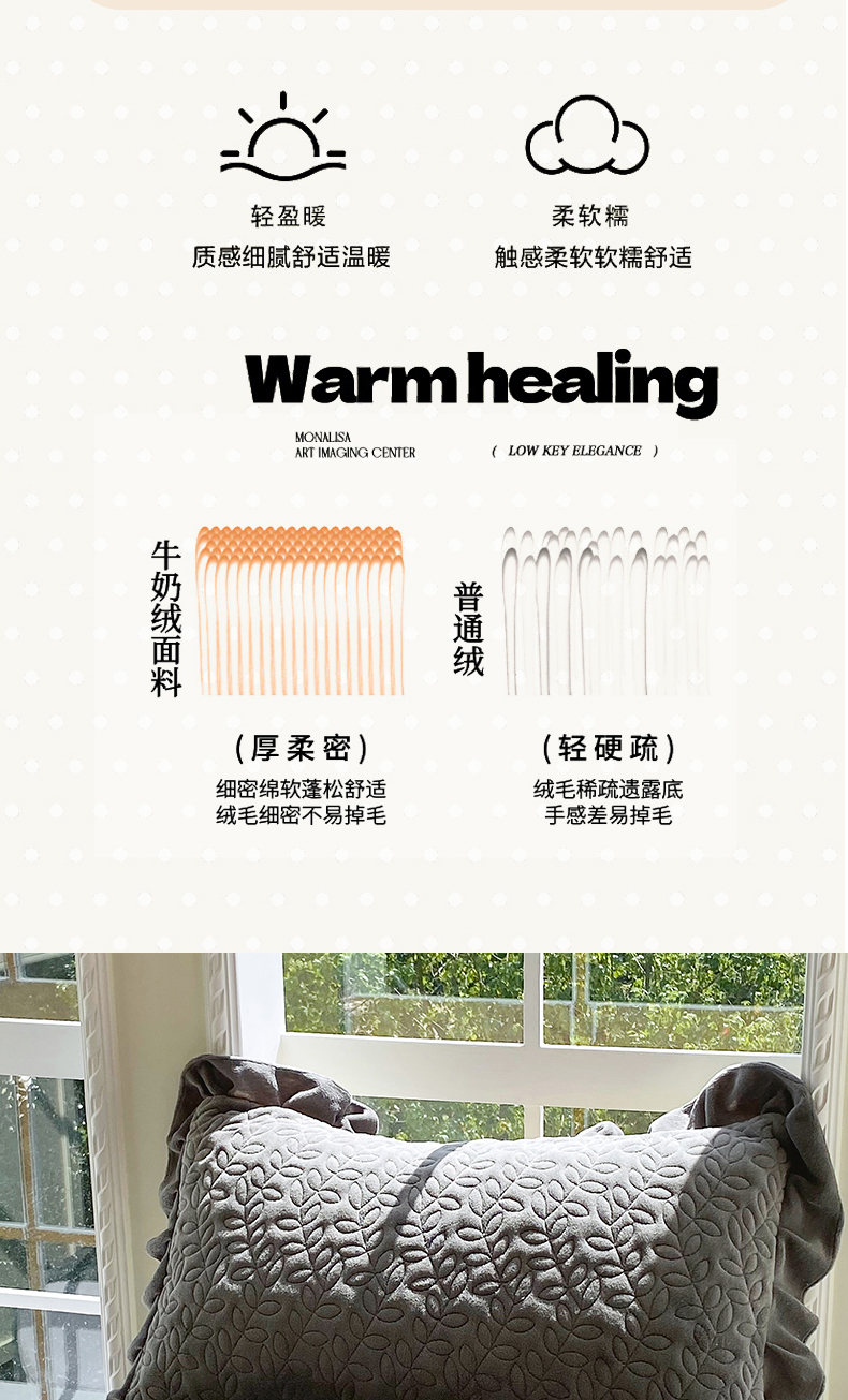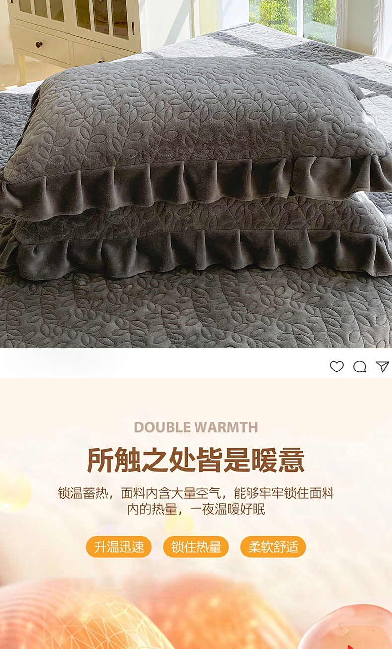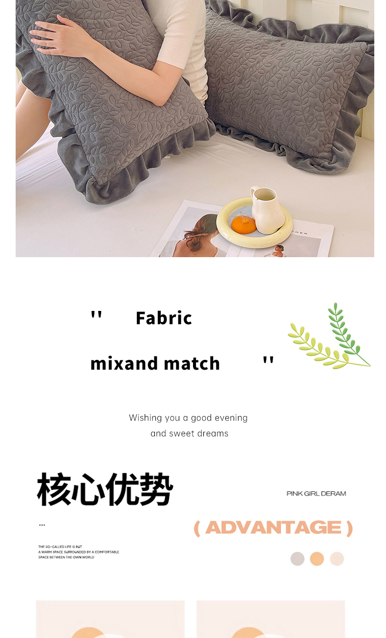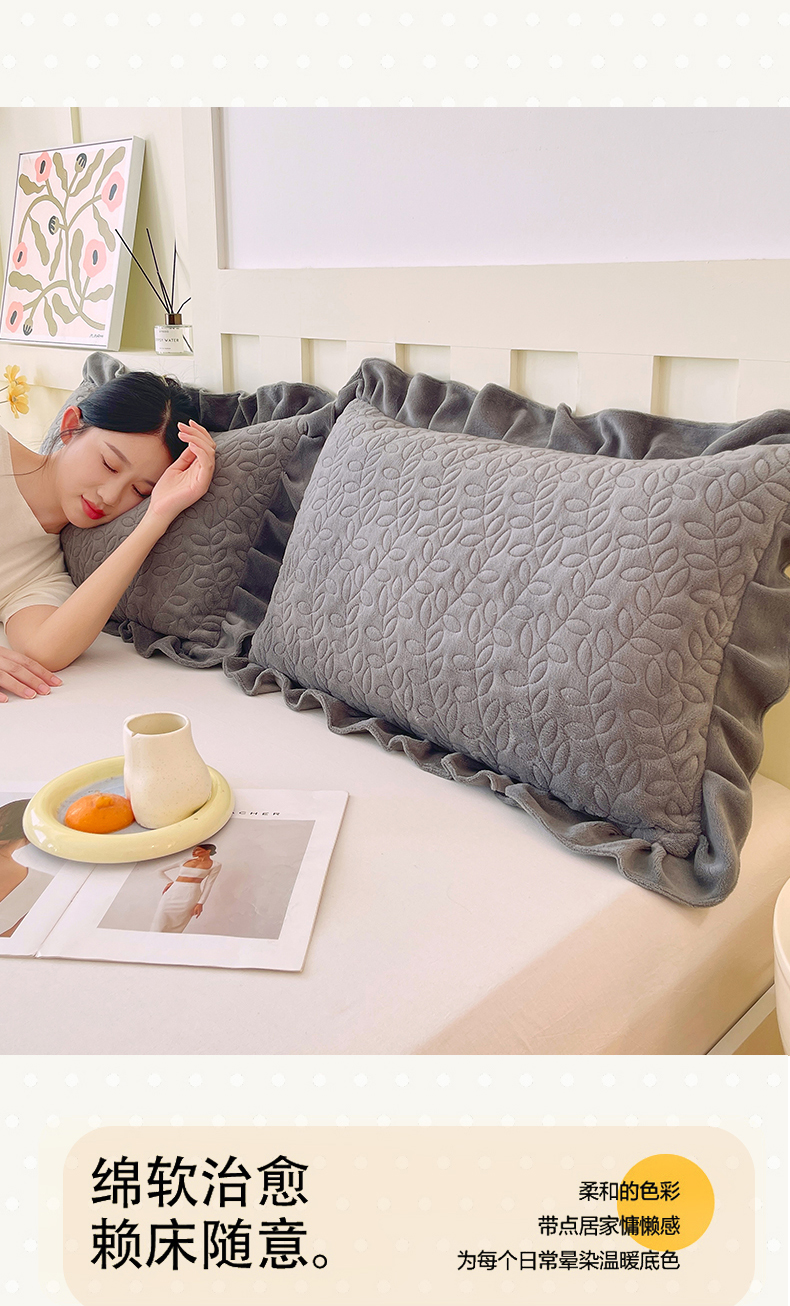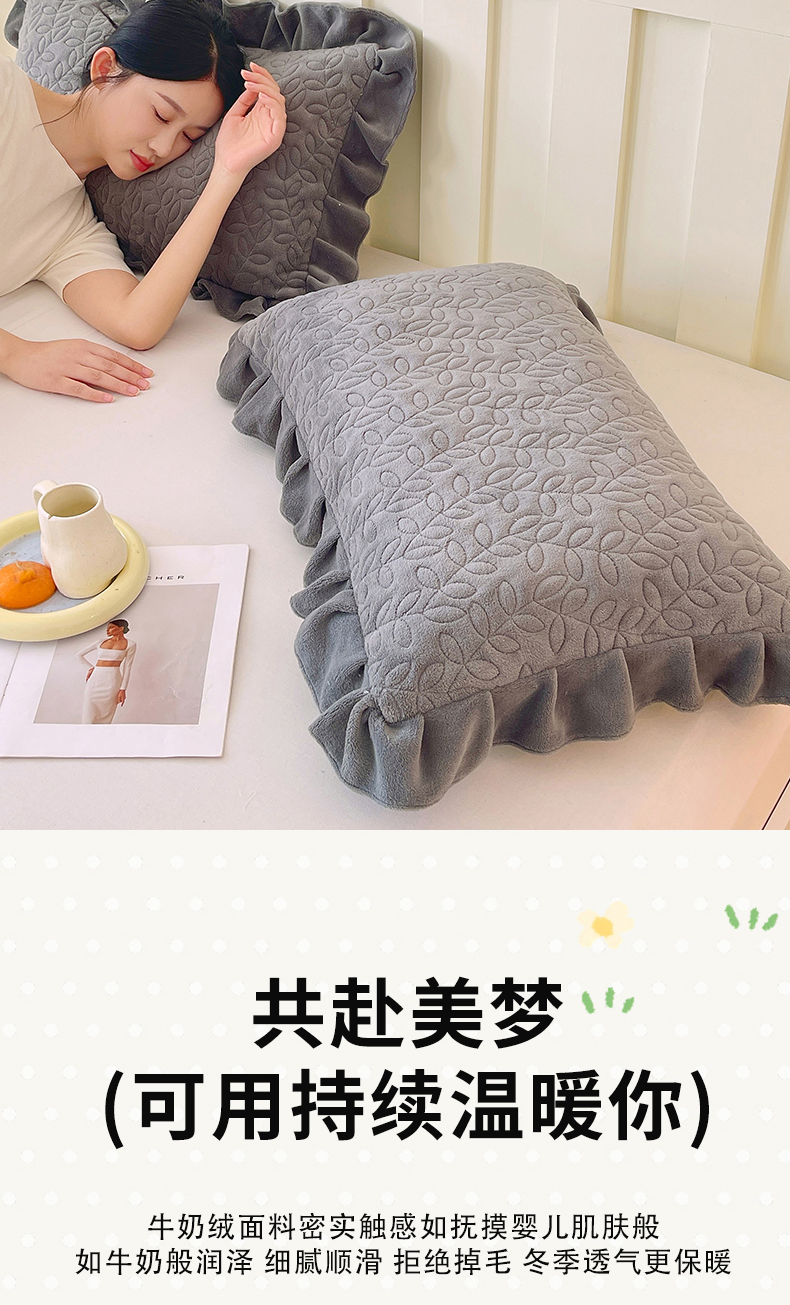 商品名称:芯宜佳 2025新款加厚牛奶绒夹棉花边短枕套 幸运草-高级灰