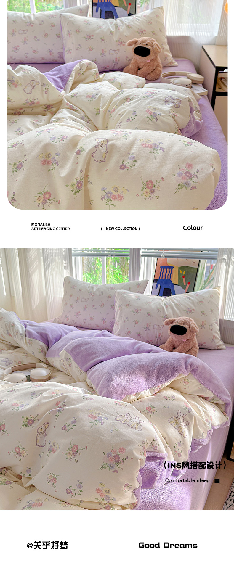 商品名称:梦洋家纺 2025新款全棉牛奶绒高克重保暖被套 忘忧草