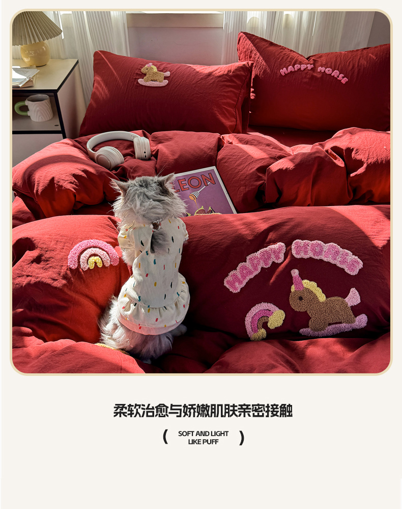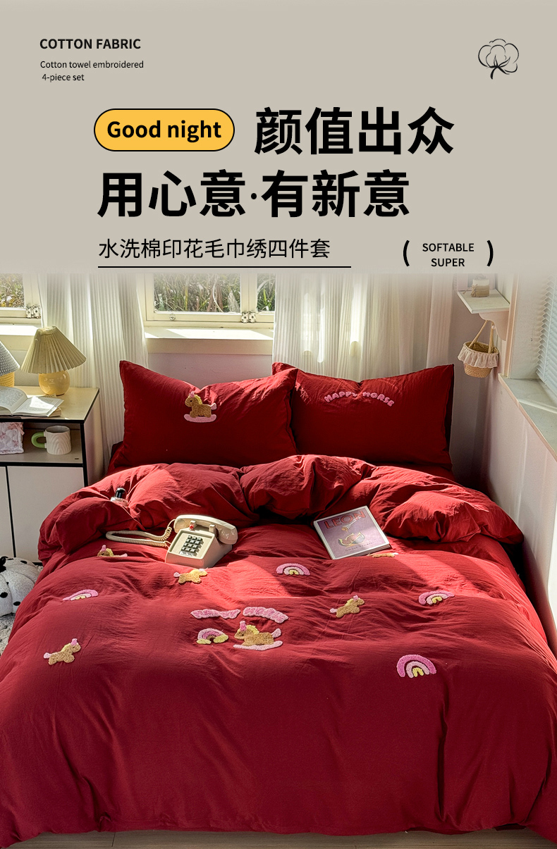 当前位置: 91家纺网 > 商品网购 > 床品套件 > 四件套 > 水洗棉四件套 > 优兰朵 2025新款水洗棉印花毛巾绣四件套 奶豹小狗