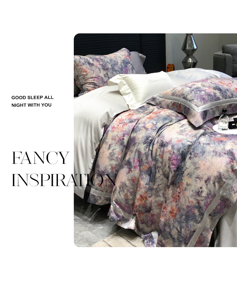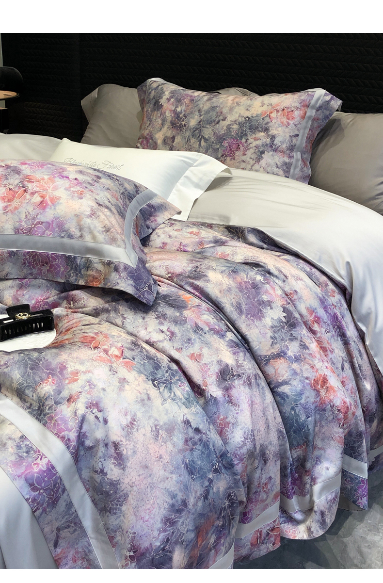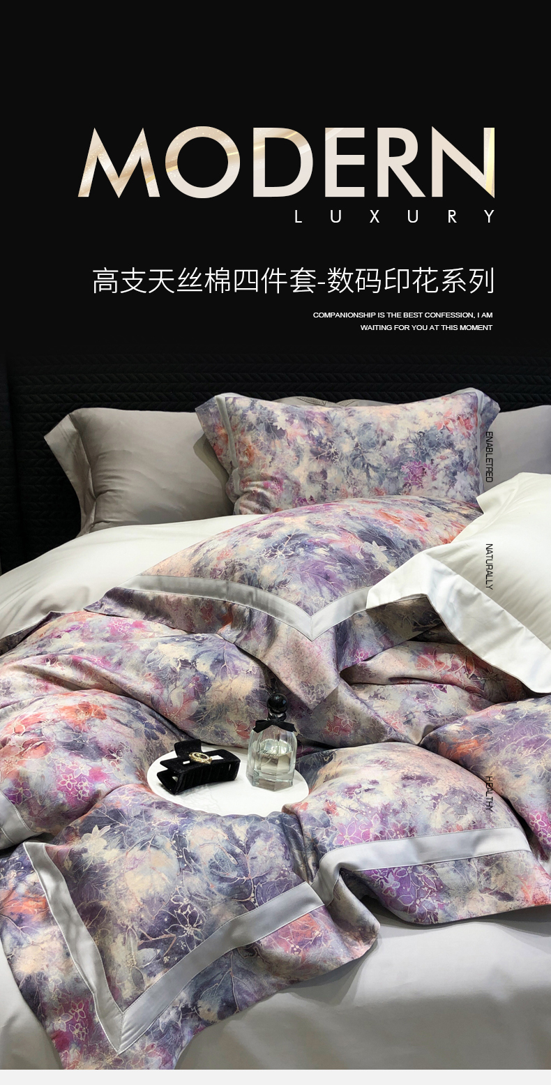 黑白森林2024款 60S支兰精天丝数码印花四件套,朝颜,木槿,玉茗,春浅,京墨,半夏,丹若,繁缕,青黛,德琳-粉,德琳-绿,蒂娜-灰,蒂娜-紫,慧莉-粉,慧莉-绿,欧瑞,夏夜
