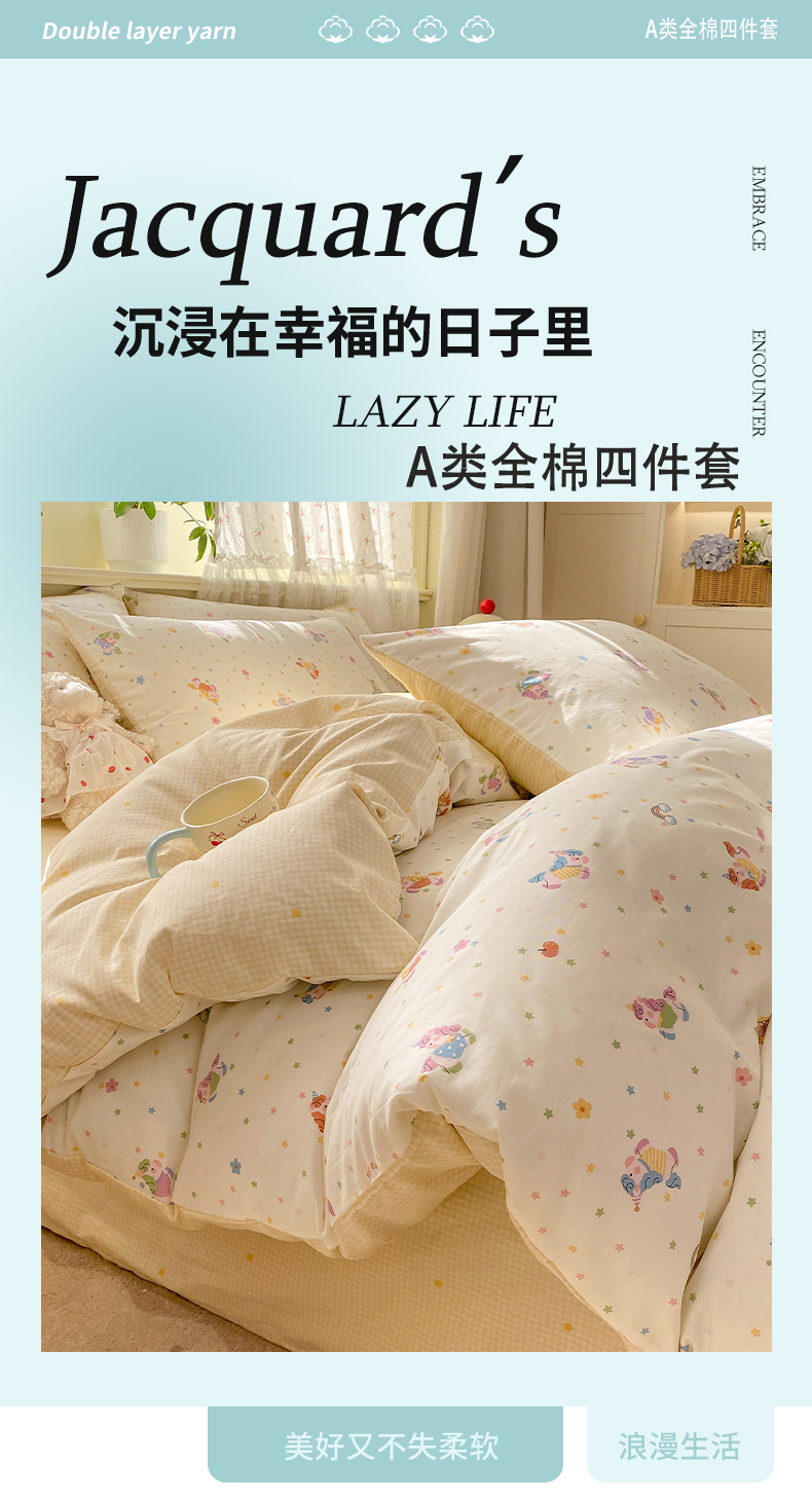 当前位置: 91家纺网 > 商品网购 > 床品套件 > 四件套 > 全棉普通四件套 > 红日子纺织品 2026新款12868纯棉全棉印花卡通系列四件套 柠檬小镇