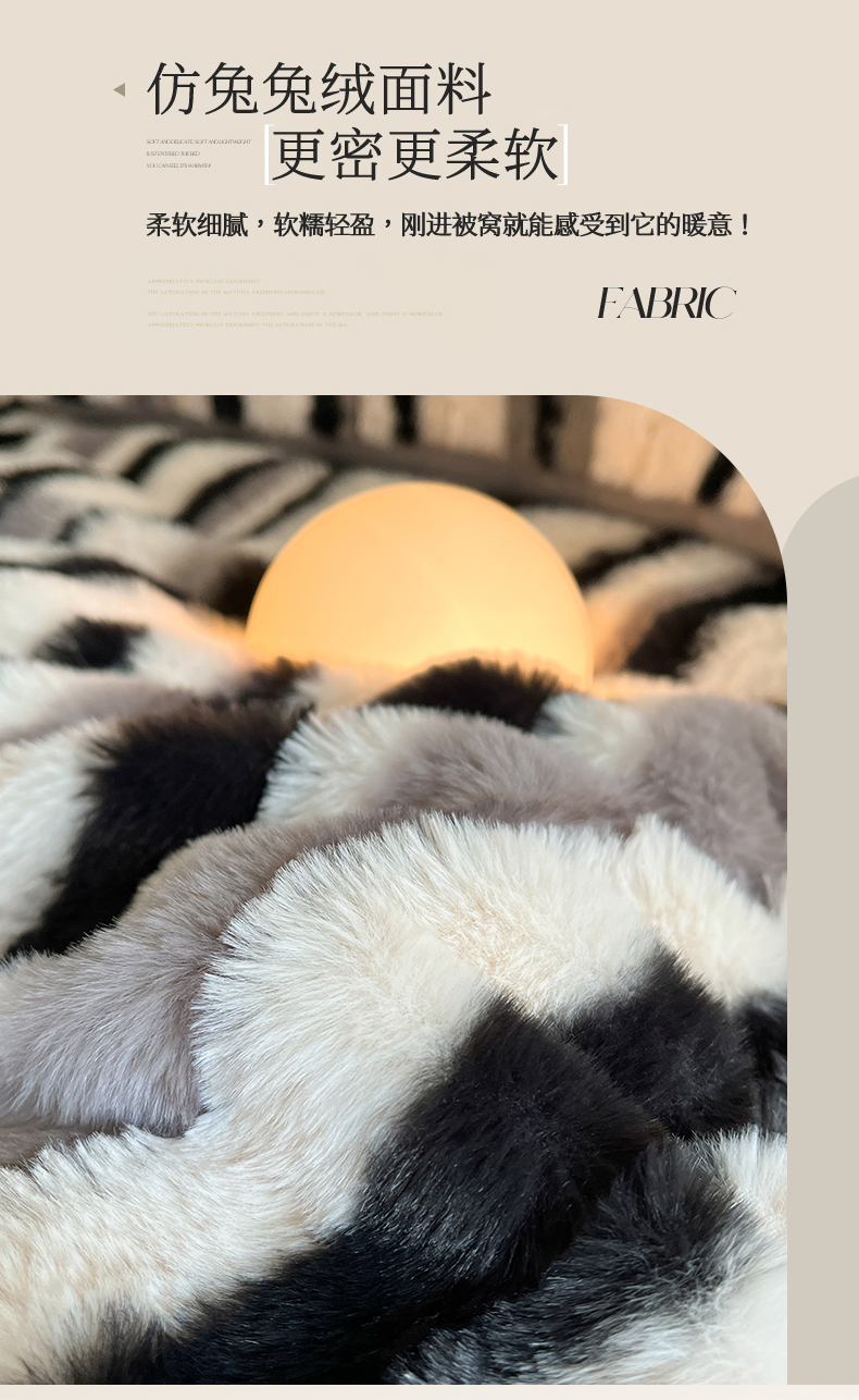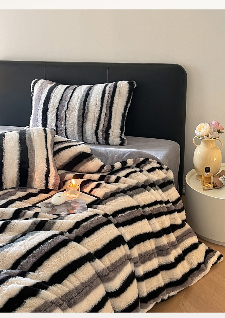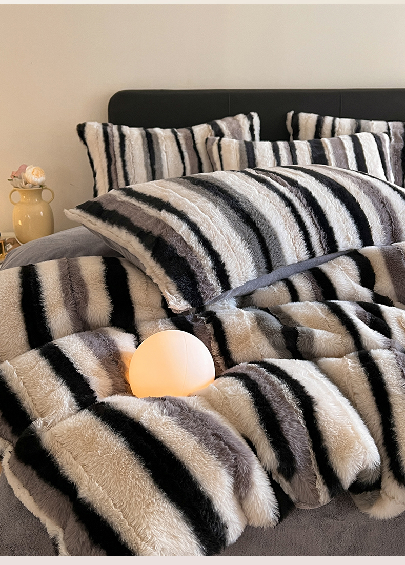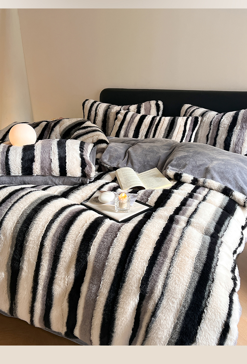玖琳家纺 2025新款双面高端高克重兔绒毛牛奶绒轻奢款四件套- 时光系列 黑白条