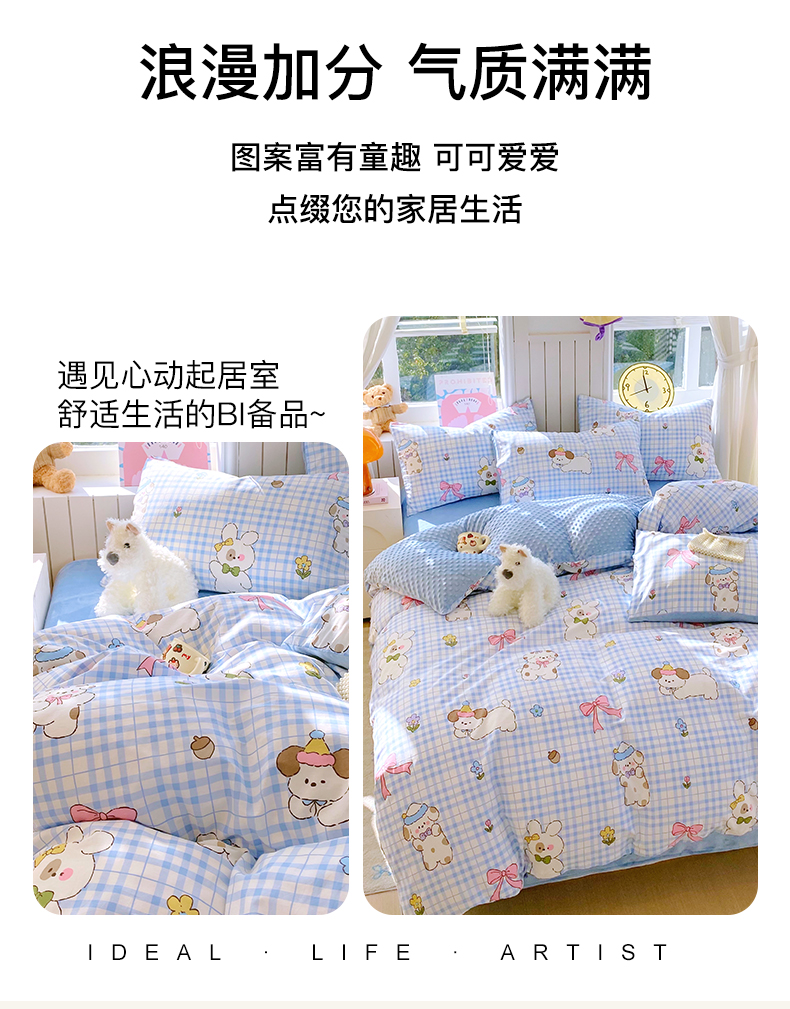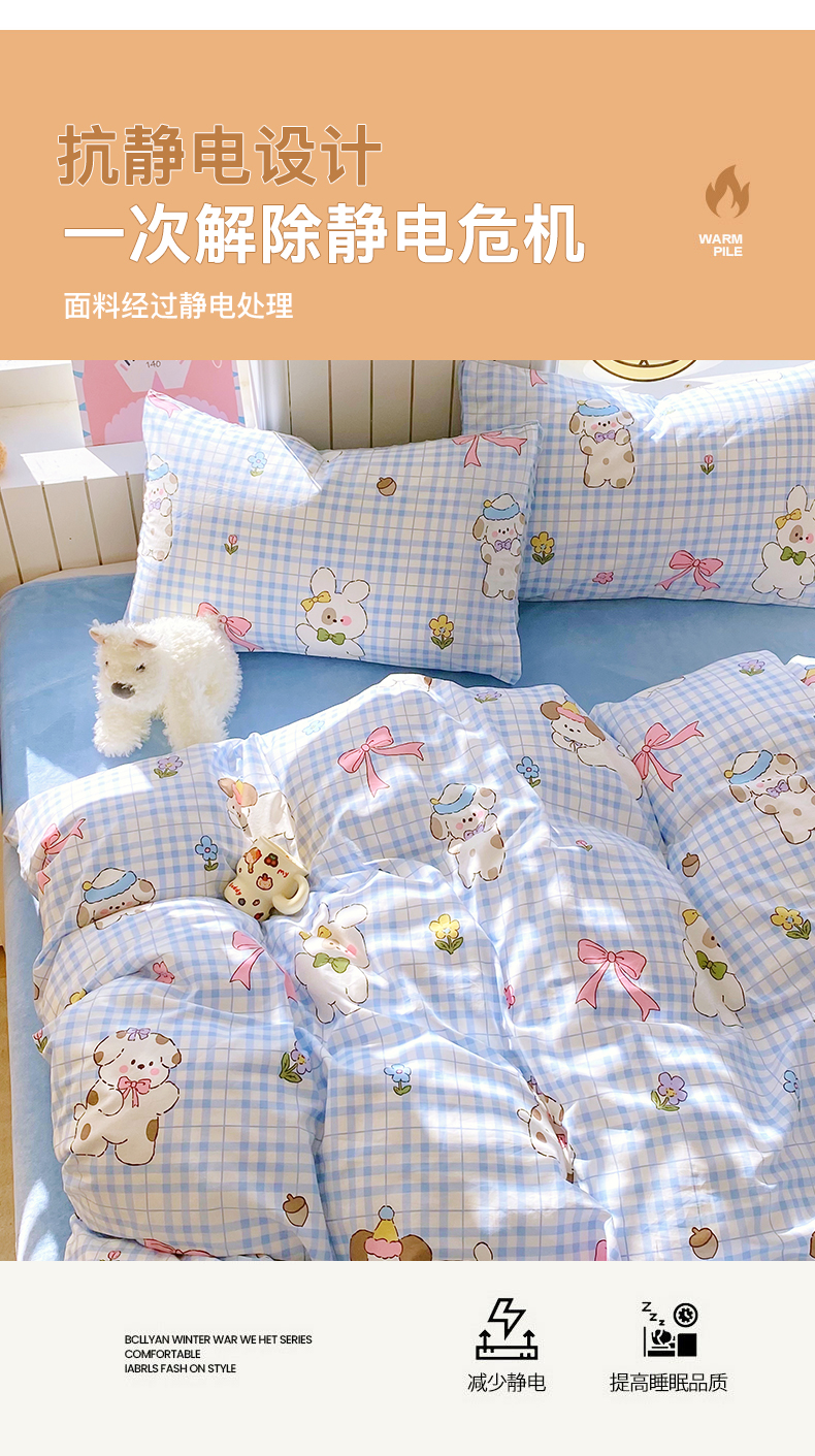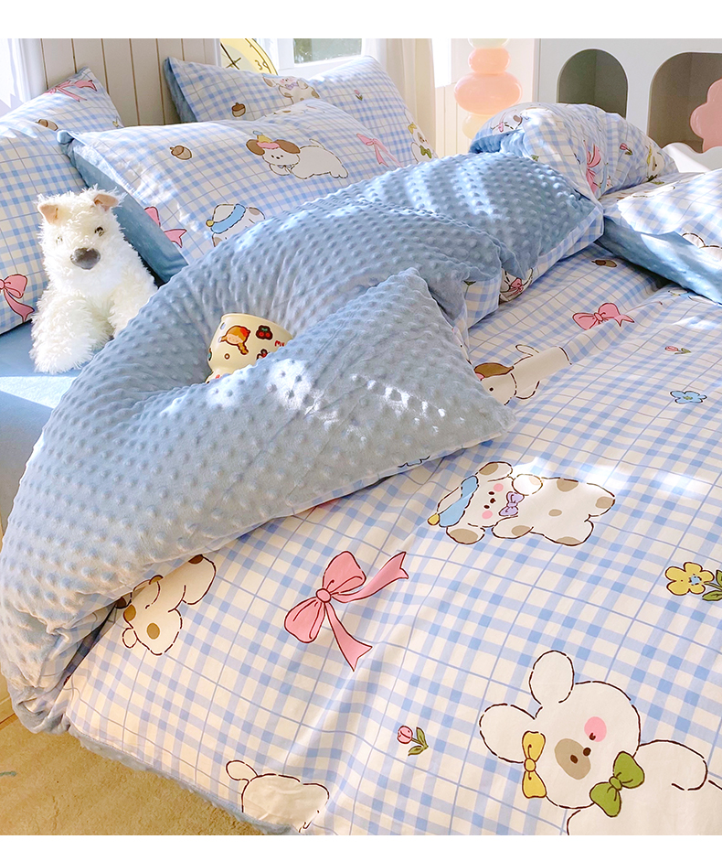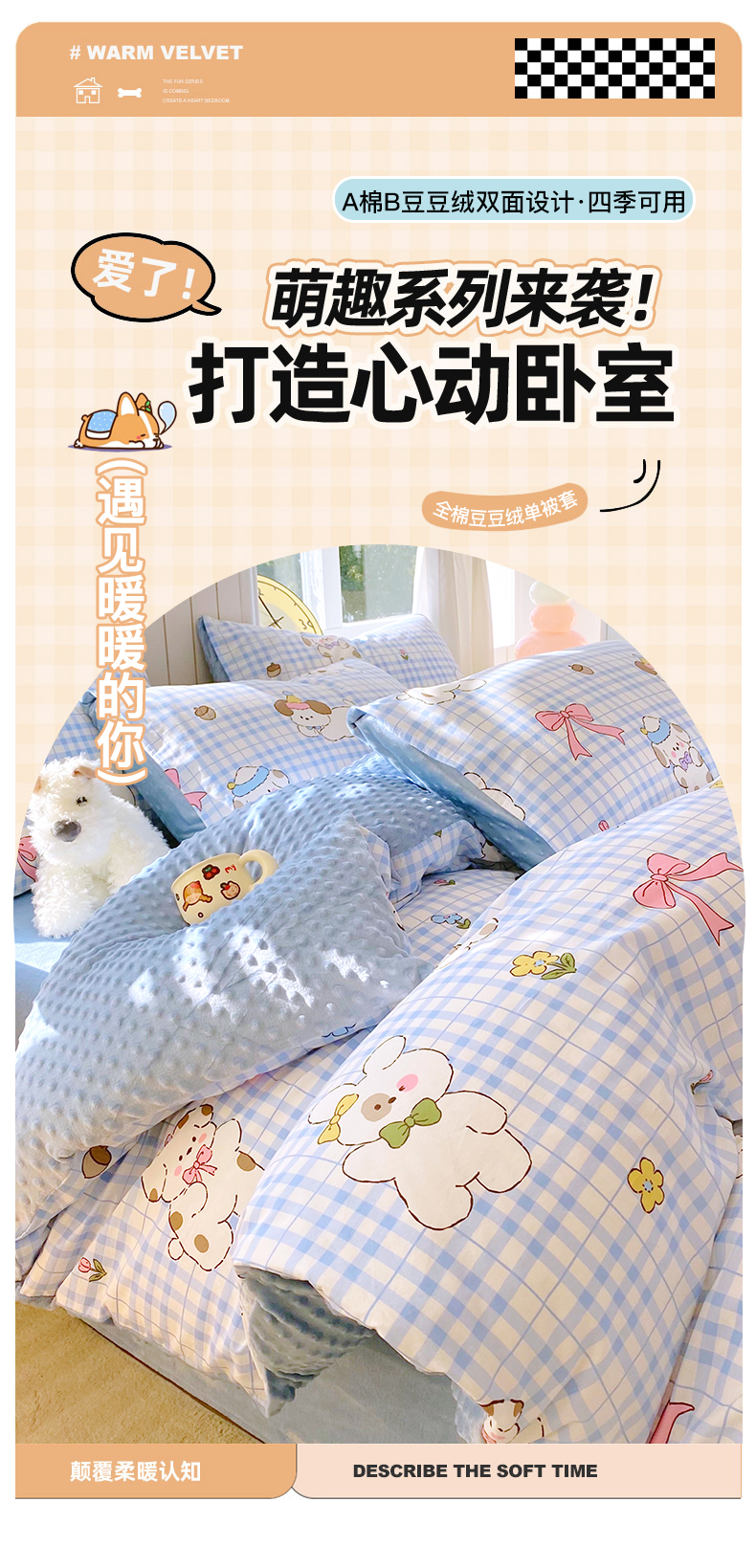 金鑫汇家纺 2025新款全棉豆豆绒系列单被套-棉加绒系列 棉加豆豆绒-奶油小狗