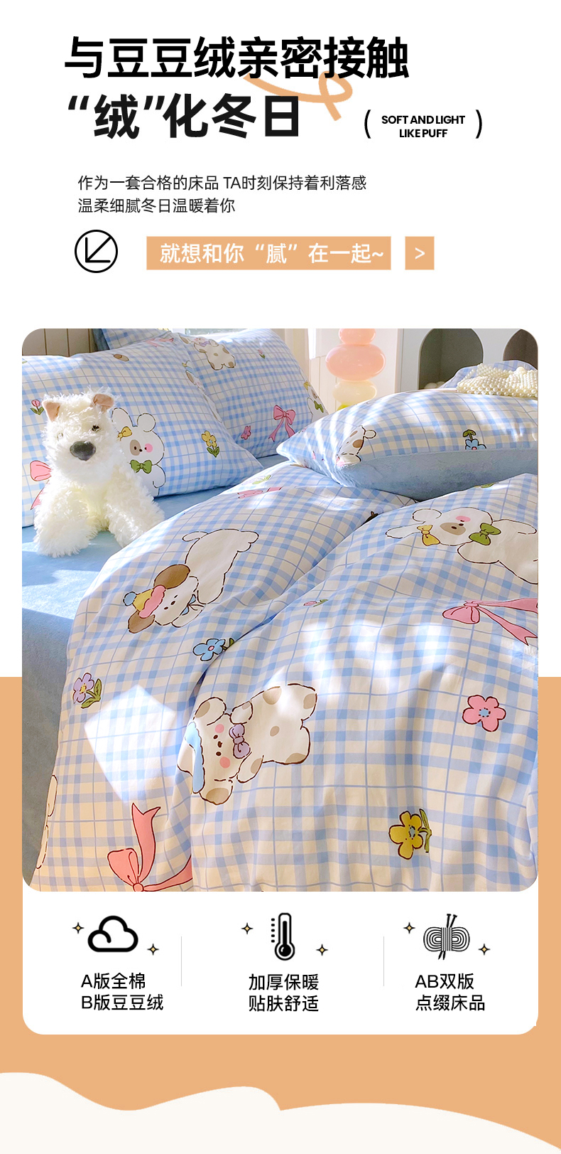 • 91家纺网 家纺一手货源 找家纺 金鑫汇家纺 2025新款全棉豆豆绒系列单被套-棉加绒系列 棉加豆豆绒-奶油小狗