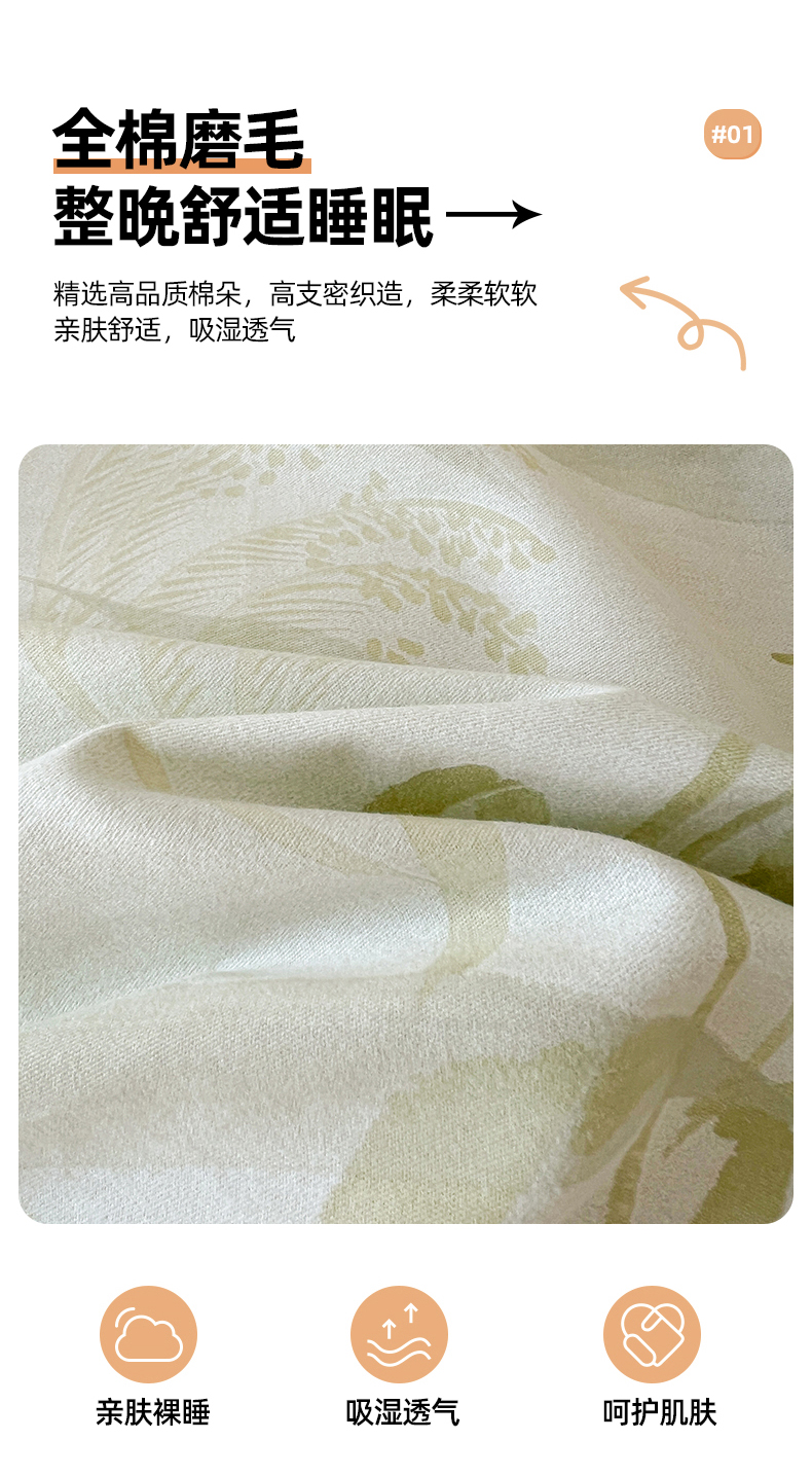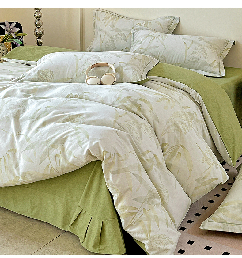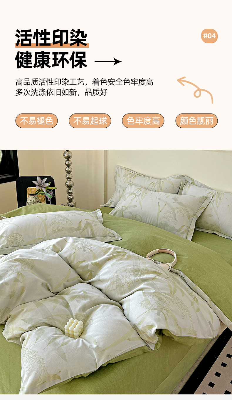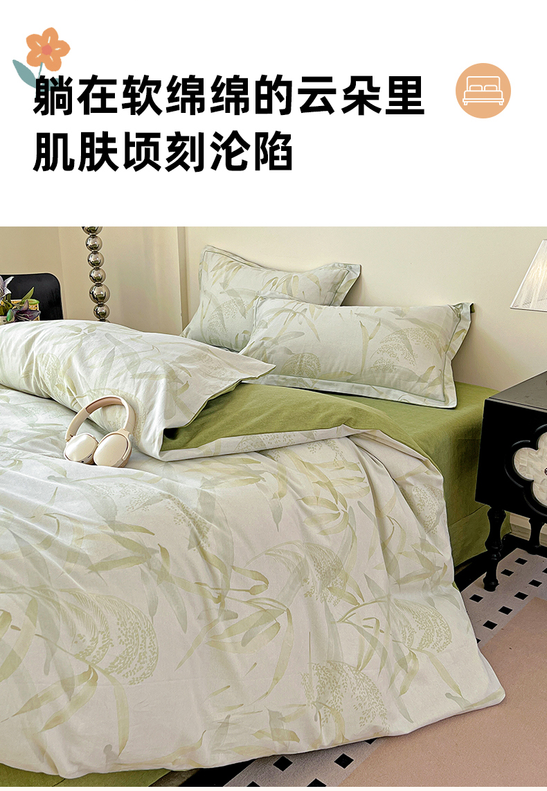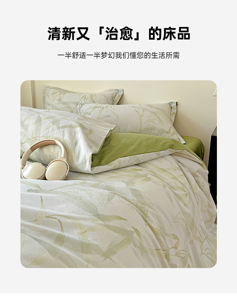 亿梵家居 2026新款全棉纯棉磨毛四件套 半城烟沙-绿