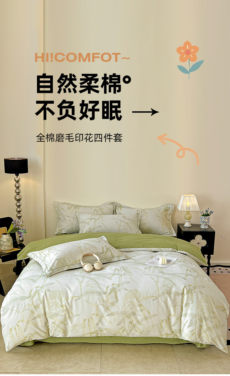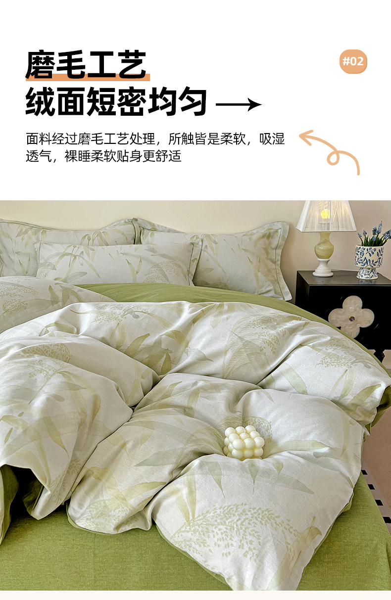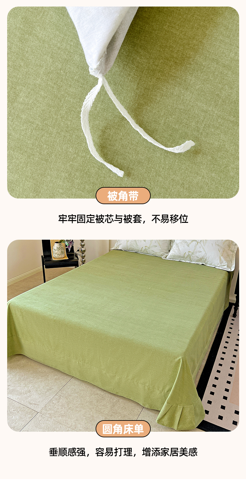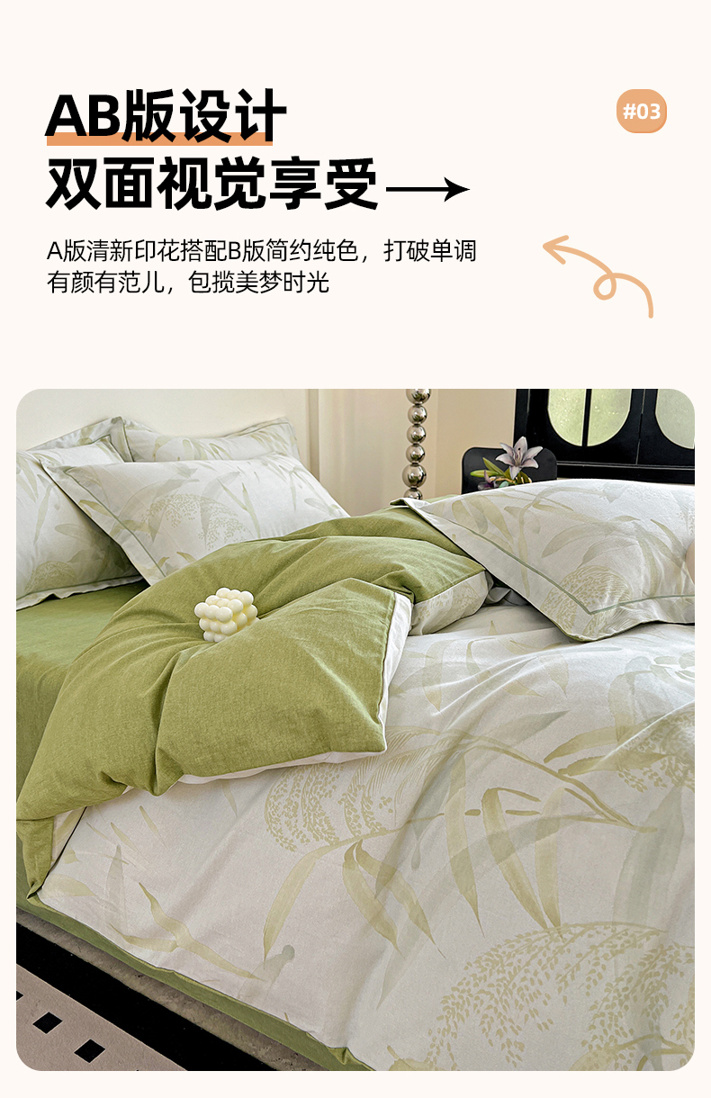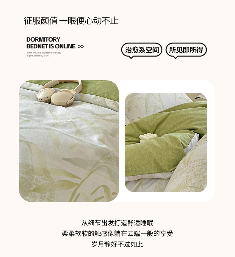 亿梵家居 2026新款全棉纯棉磨毛四件套 半城烟沙-绿