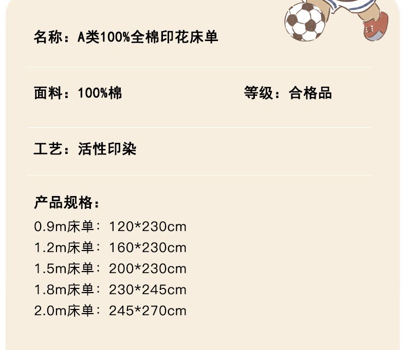 • 91家纺网 家纺一手货源 找家纺 金鑫汇家纺 2026新款13070全棉单品套件系列-成人床A版单床单 友谊足球