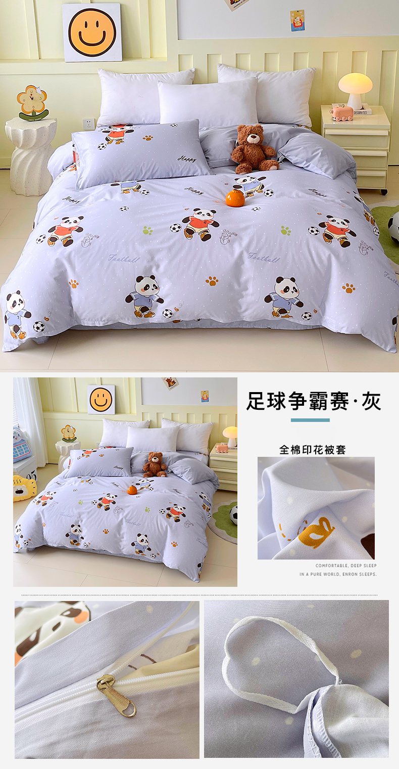 金鑫汇家纺 2026新款13070全棉单品套件系列-单品:单被套 足球争霸赛-灰