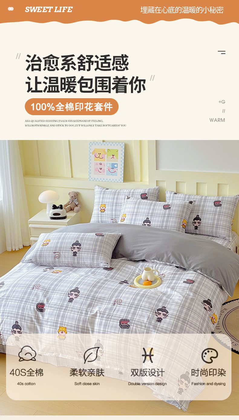 0.9床笠三件套-被套160*210 | ¥75.00 |