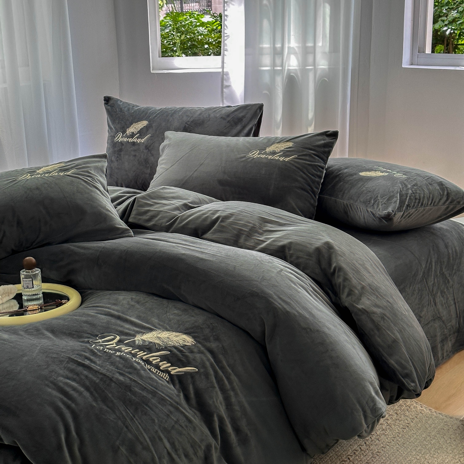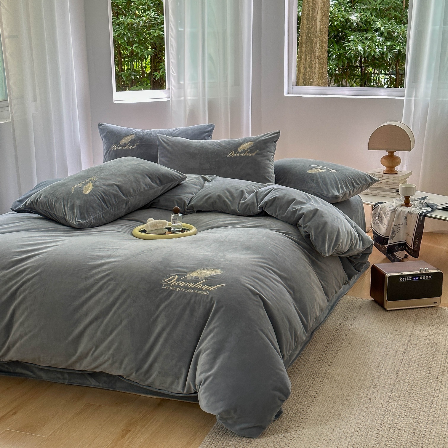 当前位置: 91家纺网 > 商品网购 > 床品套件 > 四件套 > 牛奶绒四件套 > 爱彼家纺 2026新款羽毛水晶绒四件套-系列四 羽毛-浅灰