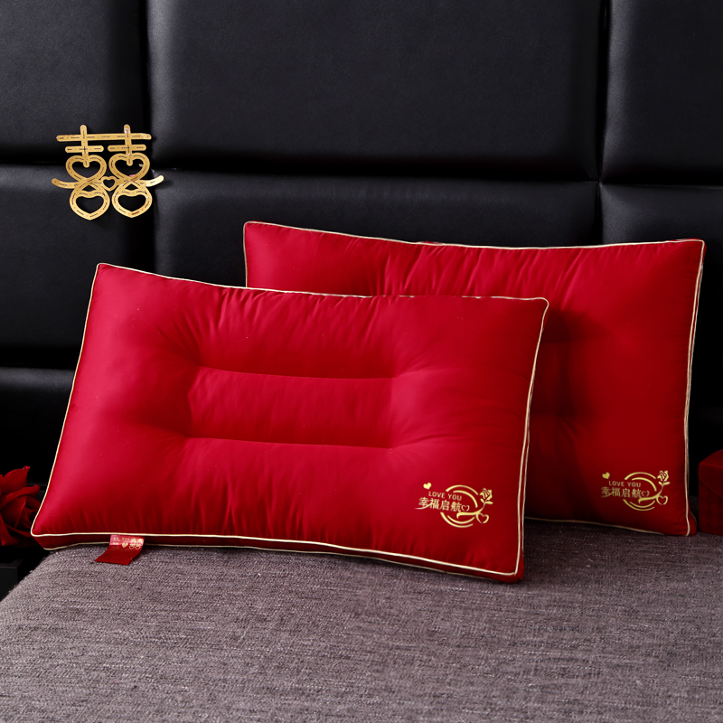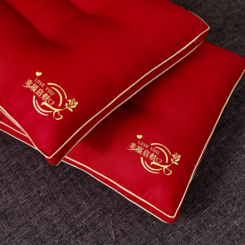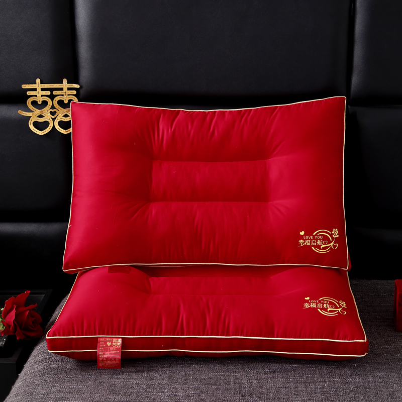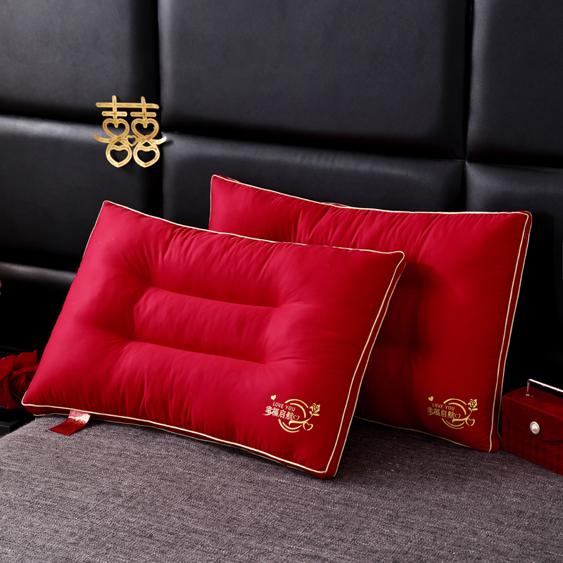 全棉绣花婚庆枕芯 全棉枕芯 大红结婚枕 喜庆枕头 全棉羽丝枕 婚庆枕头