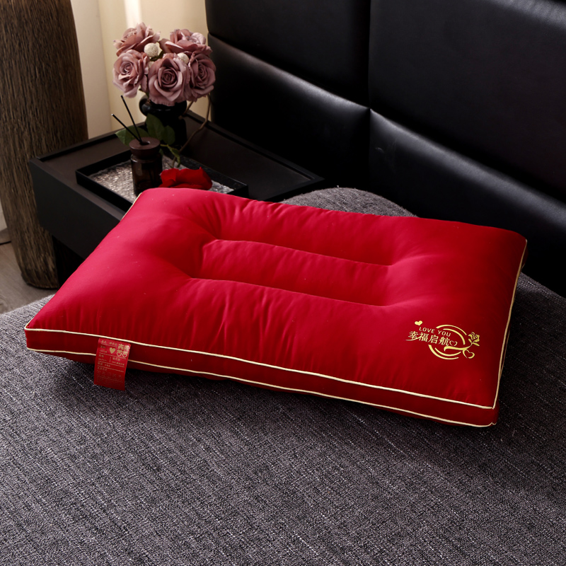 全棉绣花婚庆枕芯 全棉枕芯 大红结婚枕 喜庆枕头 全棉羽丝枕 婚庆枕头,全棉婚庆护颈羽丝枕/只,全棉婚庆护颈羽丝枕/对